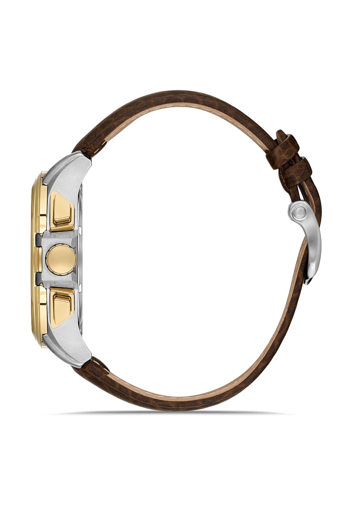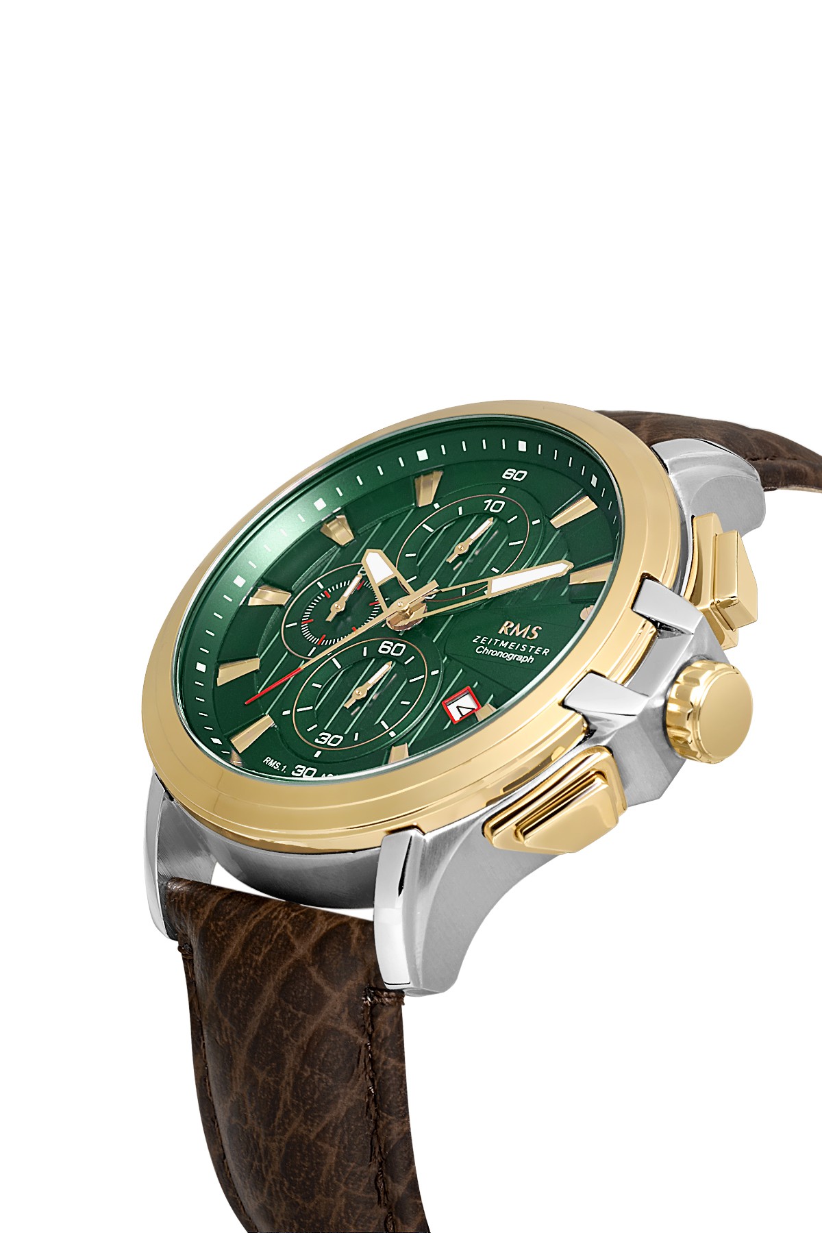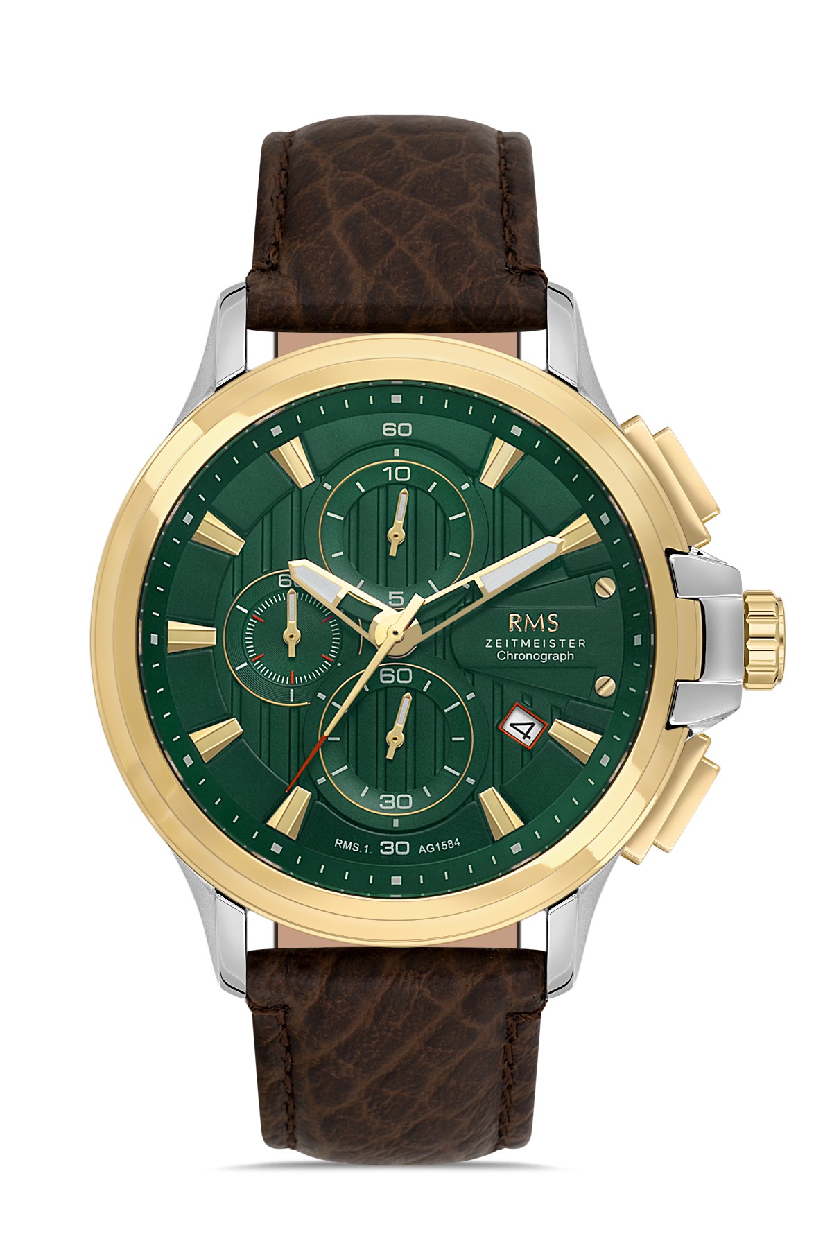 Erkek - Kronometre - Sari Beyaz - Yeşi̇l - Doğal Deri̇ Kordon - Kahverengi̇ - 3 Atm - Sertleşti̇ri̇lmi̇ş Mi̇neral Cam - Grand Romanson - 45