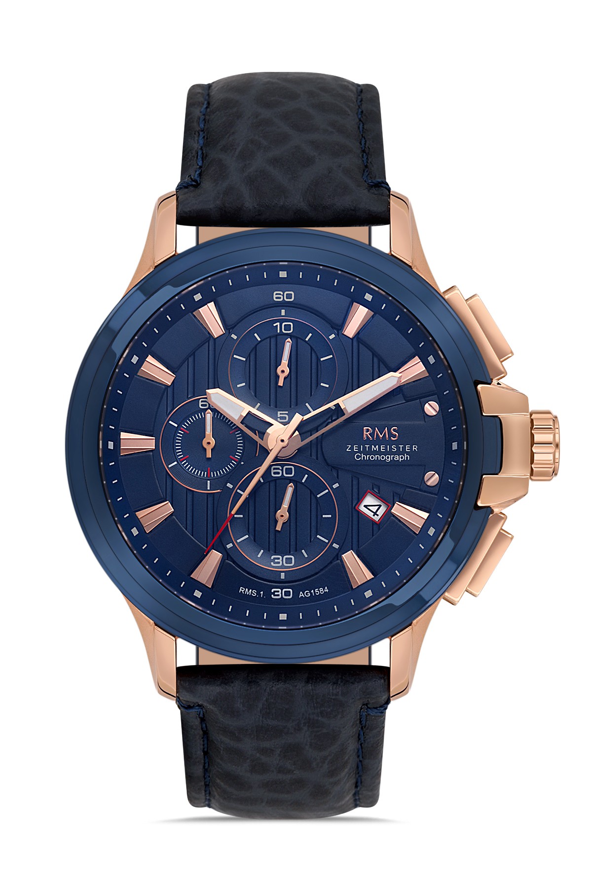 Erkek - Kronometre - Rose Mavi̇ - Mavi̇ - Doğal Deri̇ Kordon - Mavi̇ - 3 Atm - Sertleşti̇ri̇lmi̇ş Mi̇neral Cam - Grand Romanson - 45