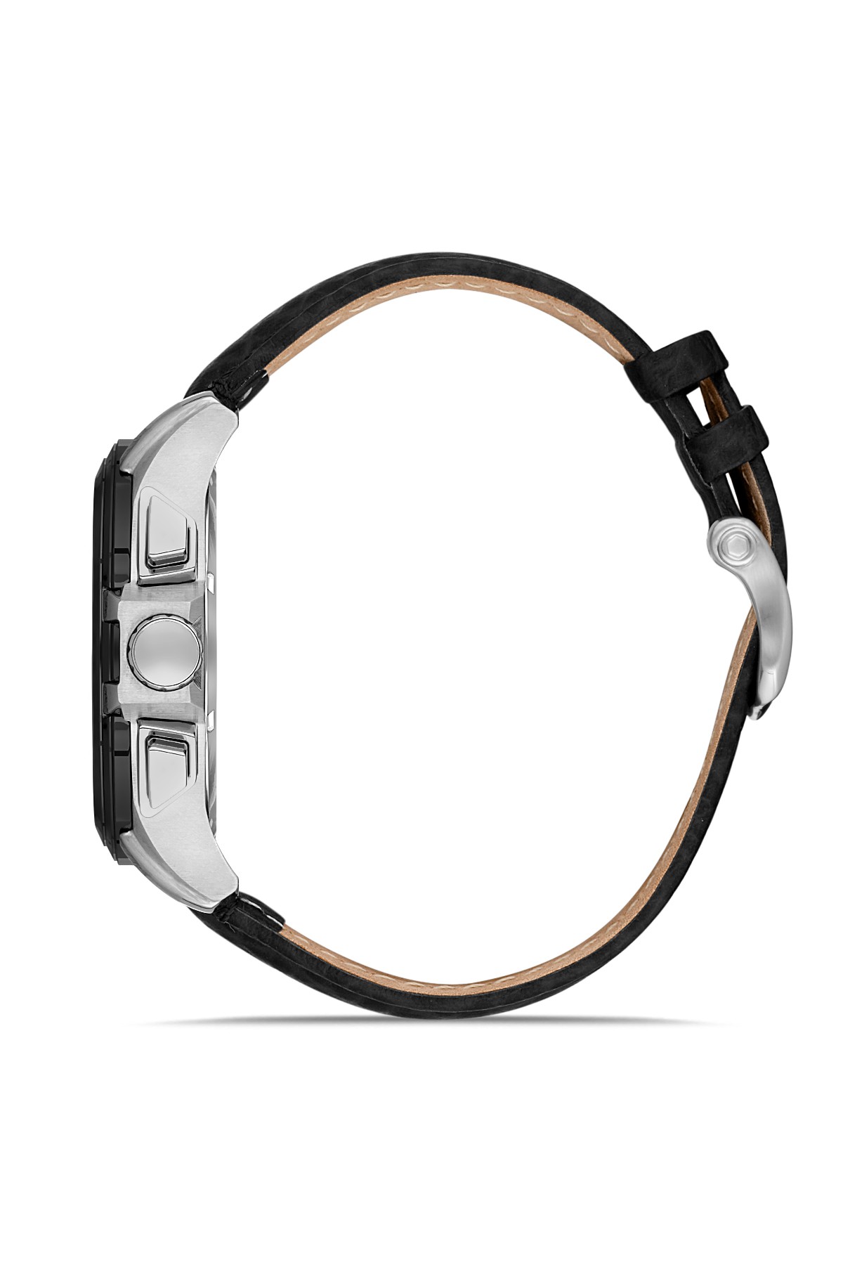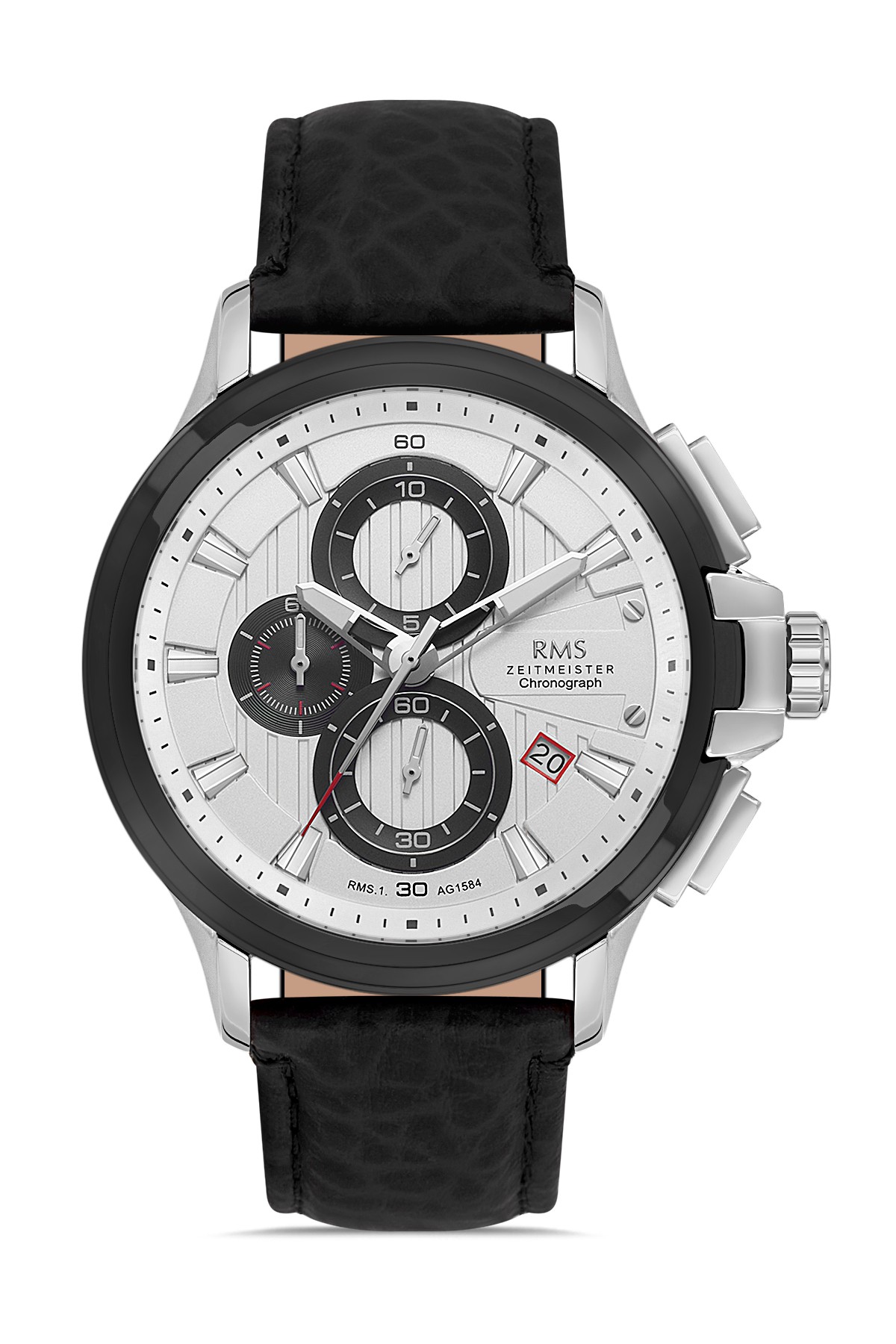 Erkek - Kronometre - Gümüş Si̇yah - Gümüş - Doğal Deri̇ Kordon - Si̇yah - 3 Atm - Sertleşti̇ri̇lmi̇ş Mi̇neral Cam - Grand Romanson - 45