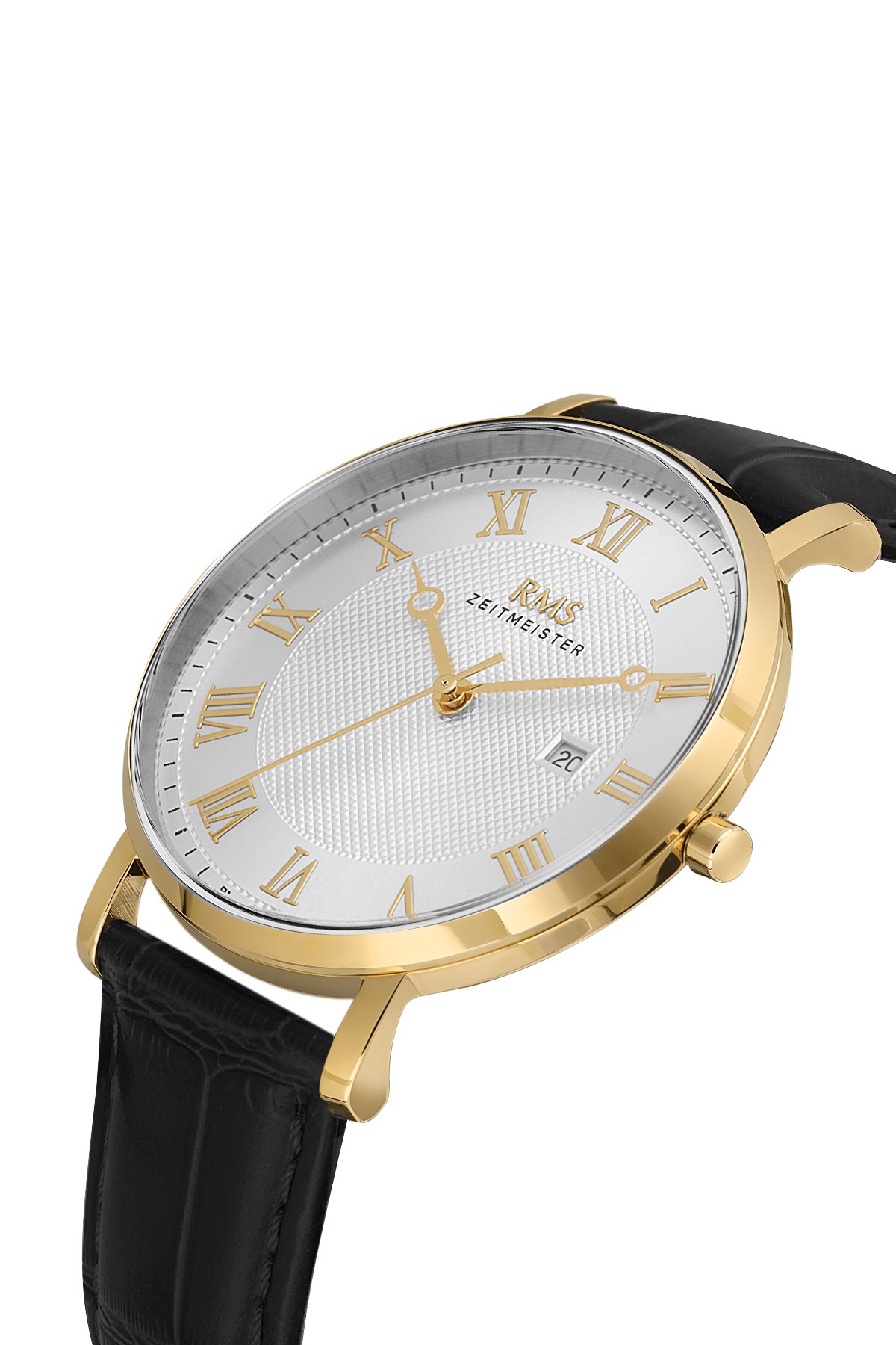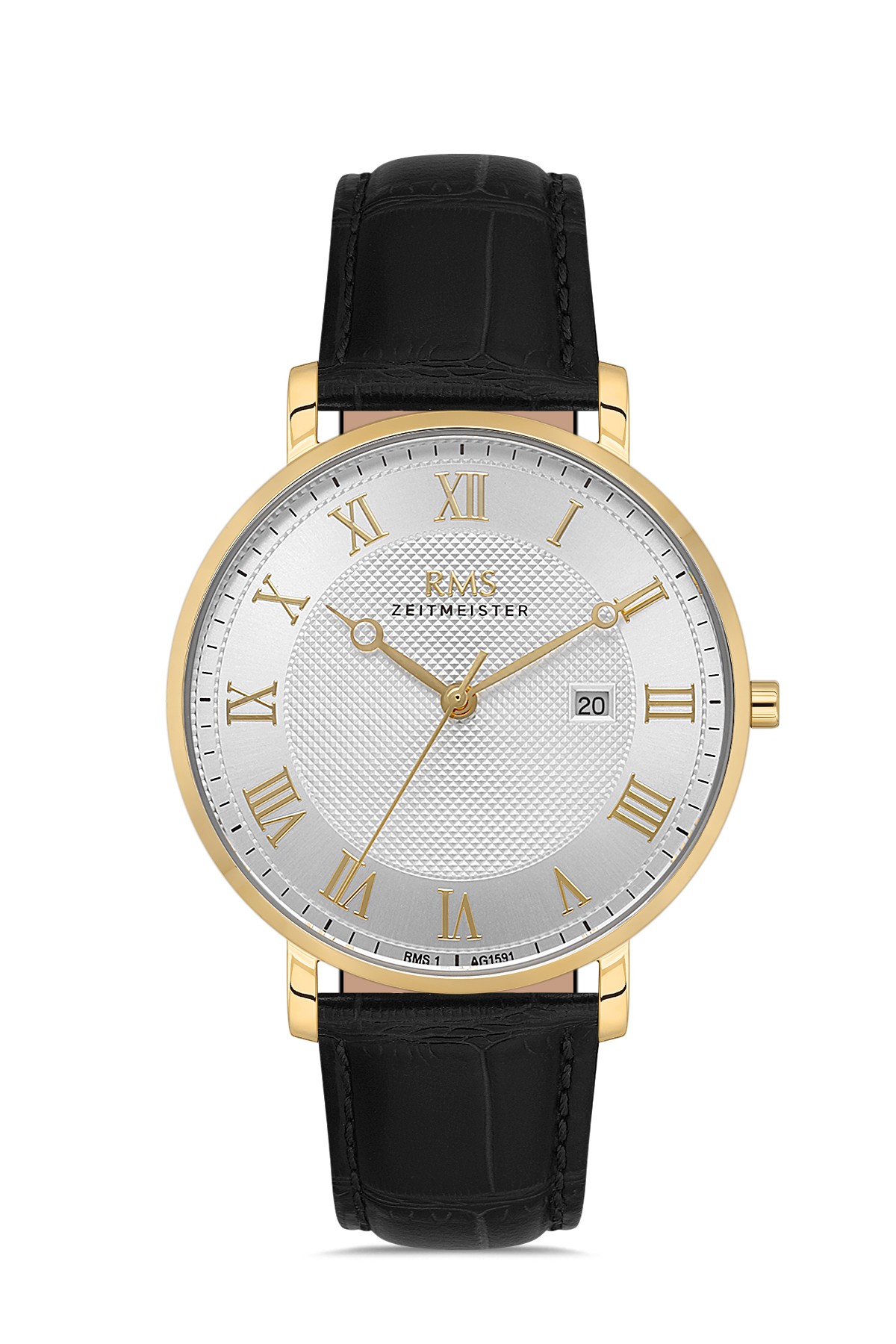 Erkek - Takvi̇mli̇ - Sari - Gümüş - Doğal Deri̇ Kordon - Si̇yah - 5 Atm - Sertleşti̇ri̇lmi̇ş Mi̇neral Cam - Grand Romanson - 41