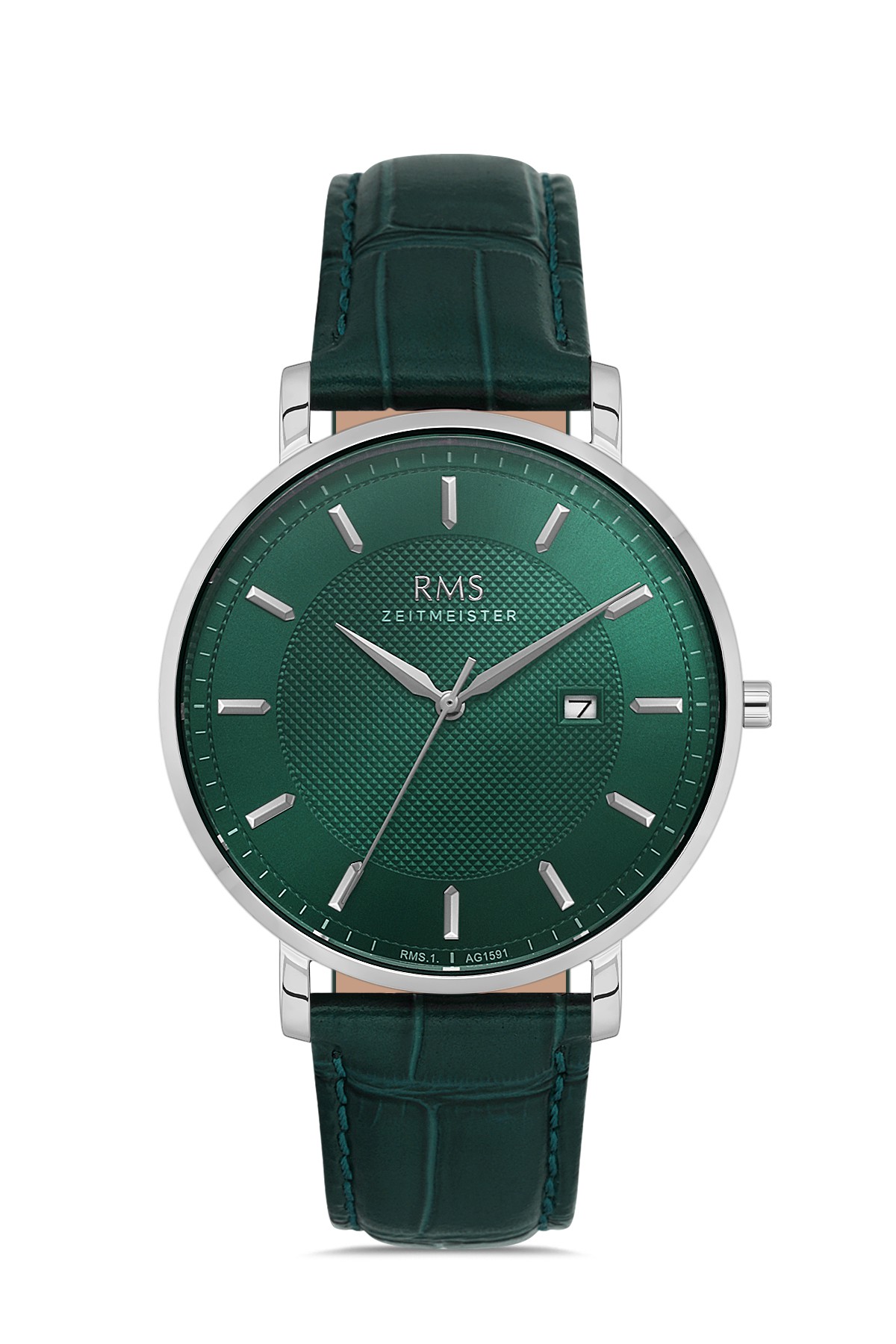 Erkek - Takvi̇mli̇ - Gümüş - Yeşi̇l - Doğal Deri̇ Kordon - Yeşi̇l - 5 Atm - Sertleşti̇ri̇lmi̇ş Mi̇neral Cam - Grand Romanson - 41