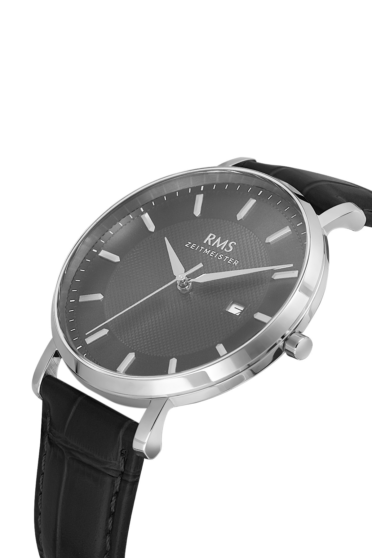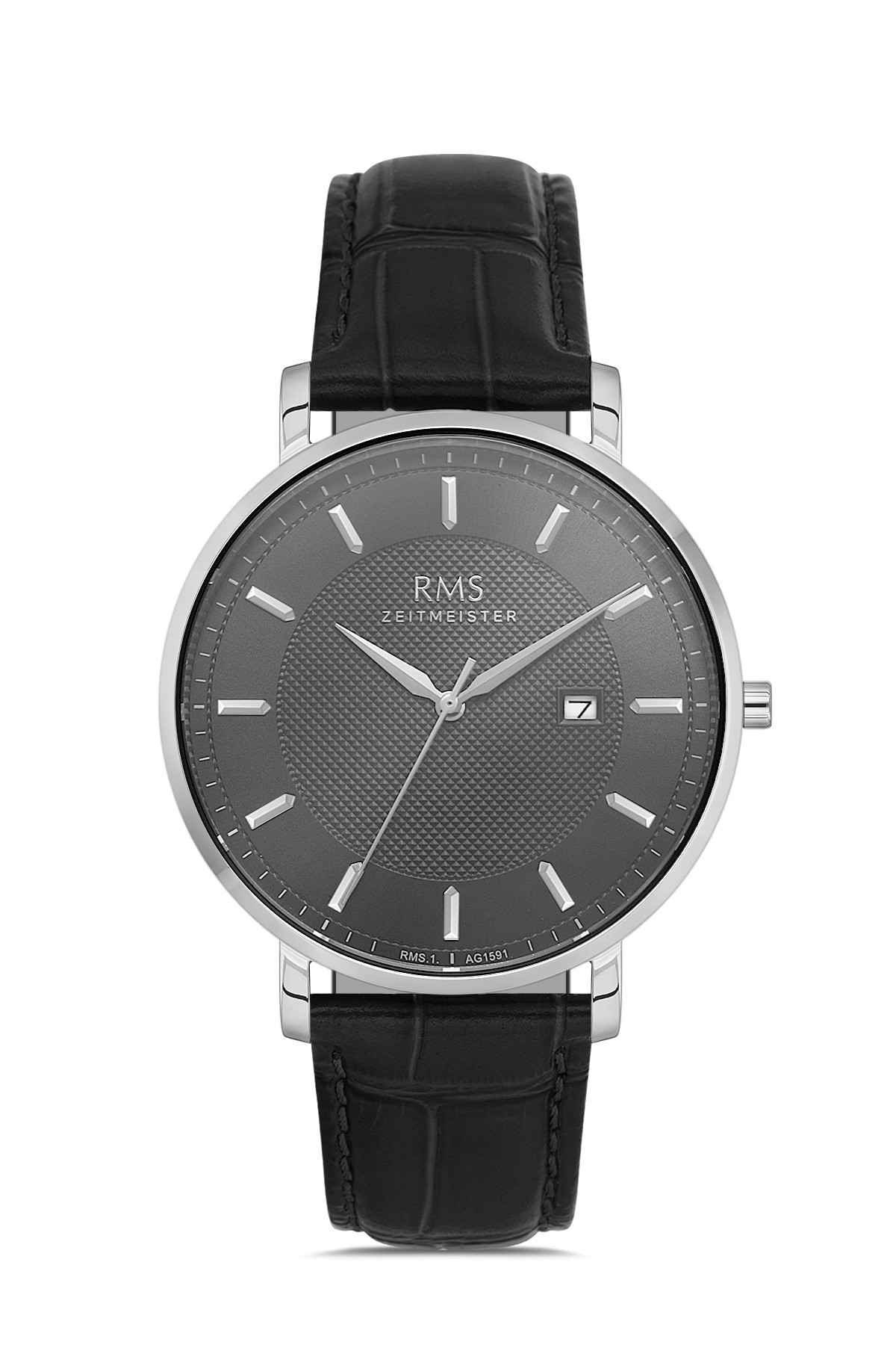 Erkek - Takvi̇mli̇ - Gümüş - Gri̇ - Doğal Deri̇ Kordon - Si̇yah - 5 Atm - Sertleşti̇ri̇lmi̇ş Mi̇neral Cam - Grand Romanson - 41