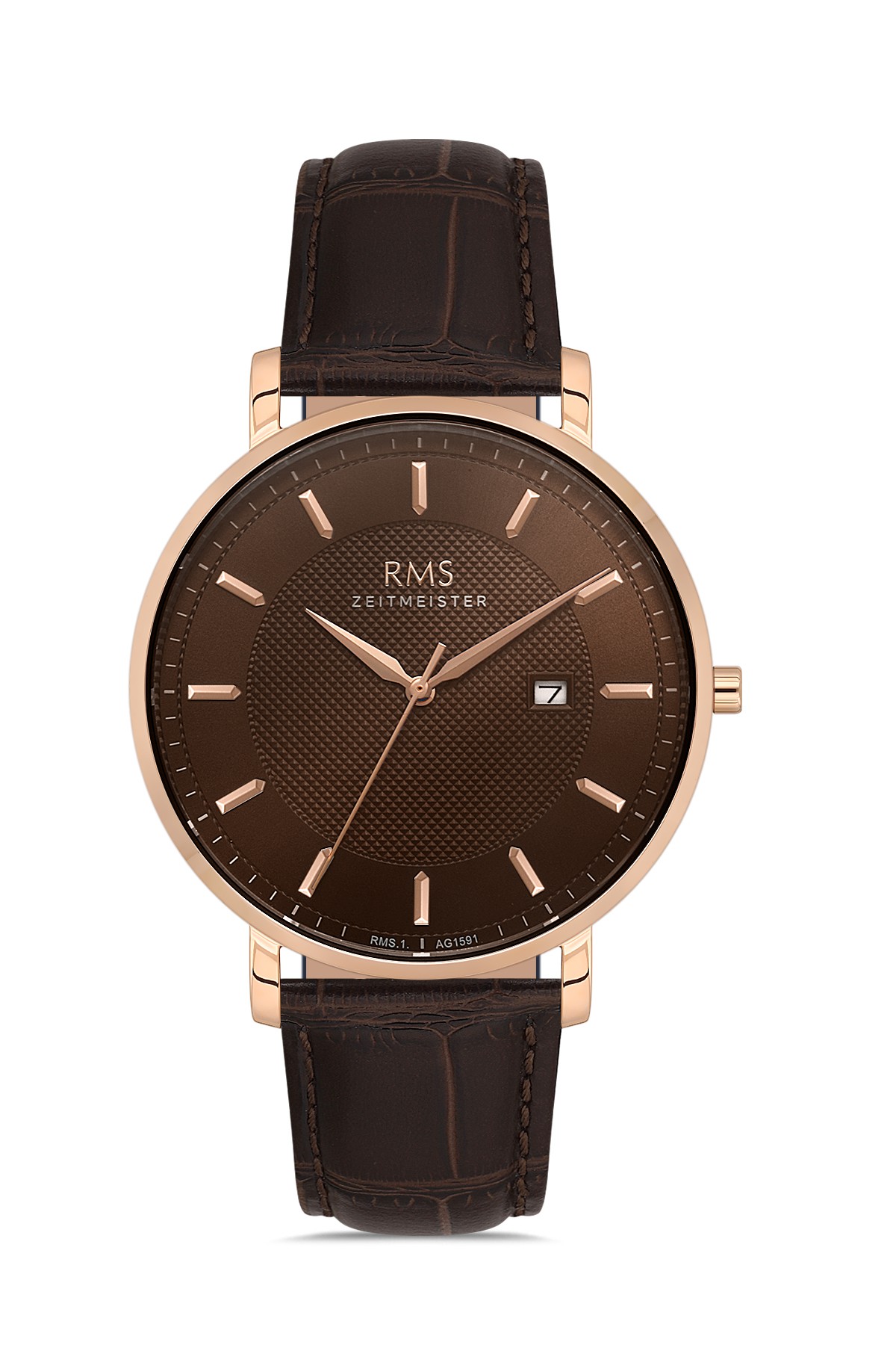 Erkek - Takvi̇mli̇ - Rose - Kahverengi̇ - Doğal Deri̇ Kordon - Kahverengi̇ - 5 Atm - Sertleşti̇ri̇lmi̇ş Mi̇neral Cam - Grand Romanson - 41