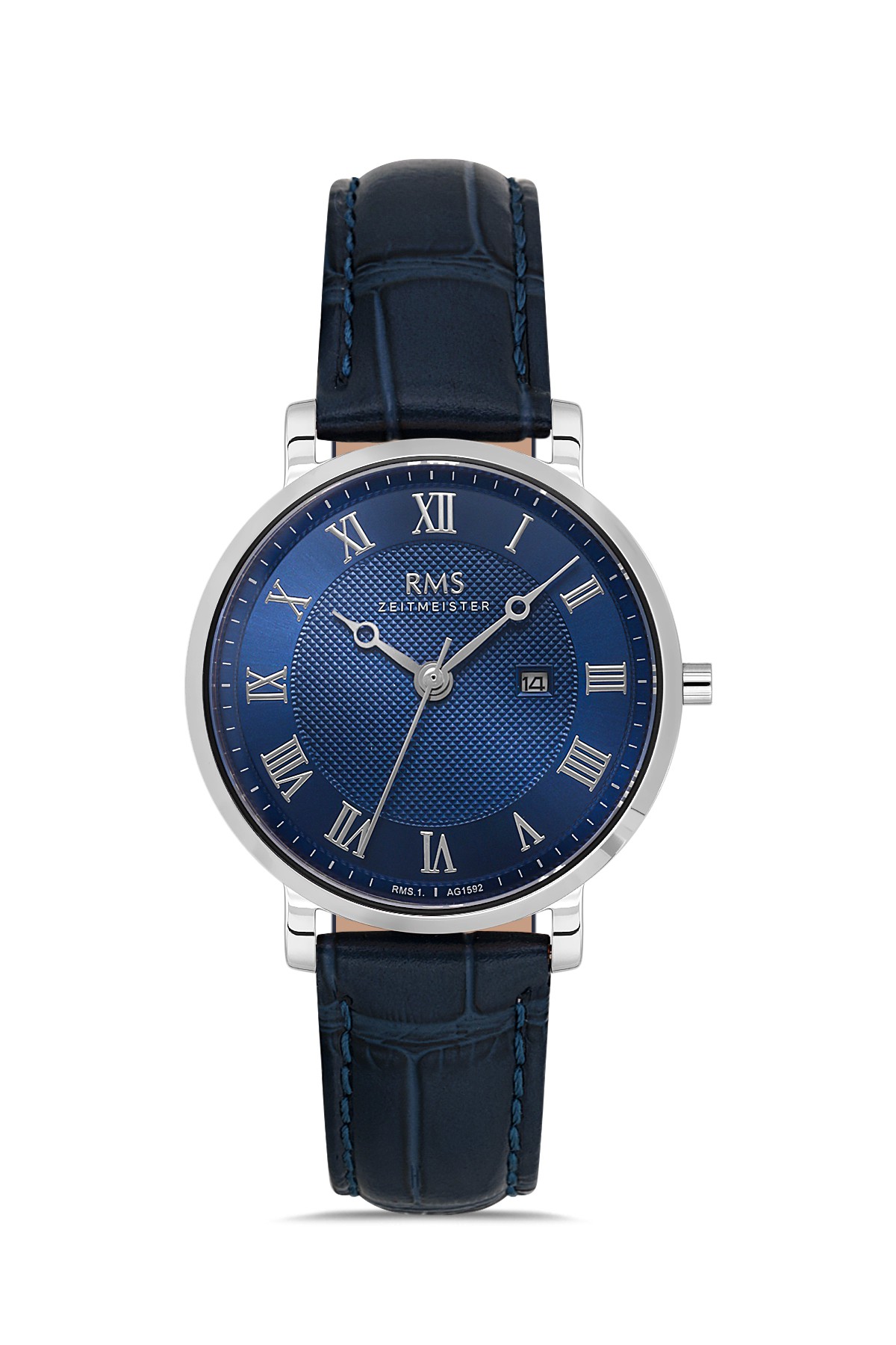 Kadın - Takvi̇mli̇ - Gümüş - Mavi̇ - Doğal Deri̇ Kordon - Mavi̇ - 5 Atm - Sertleşti̇ri̇lmi̇ş Mi̇neral Cam - Grand Romanson - 34