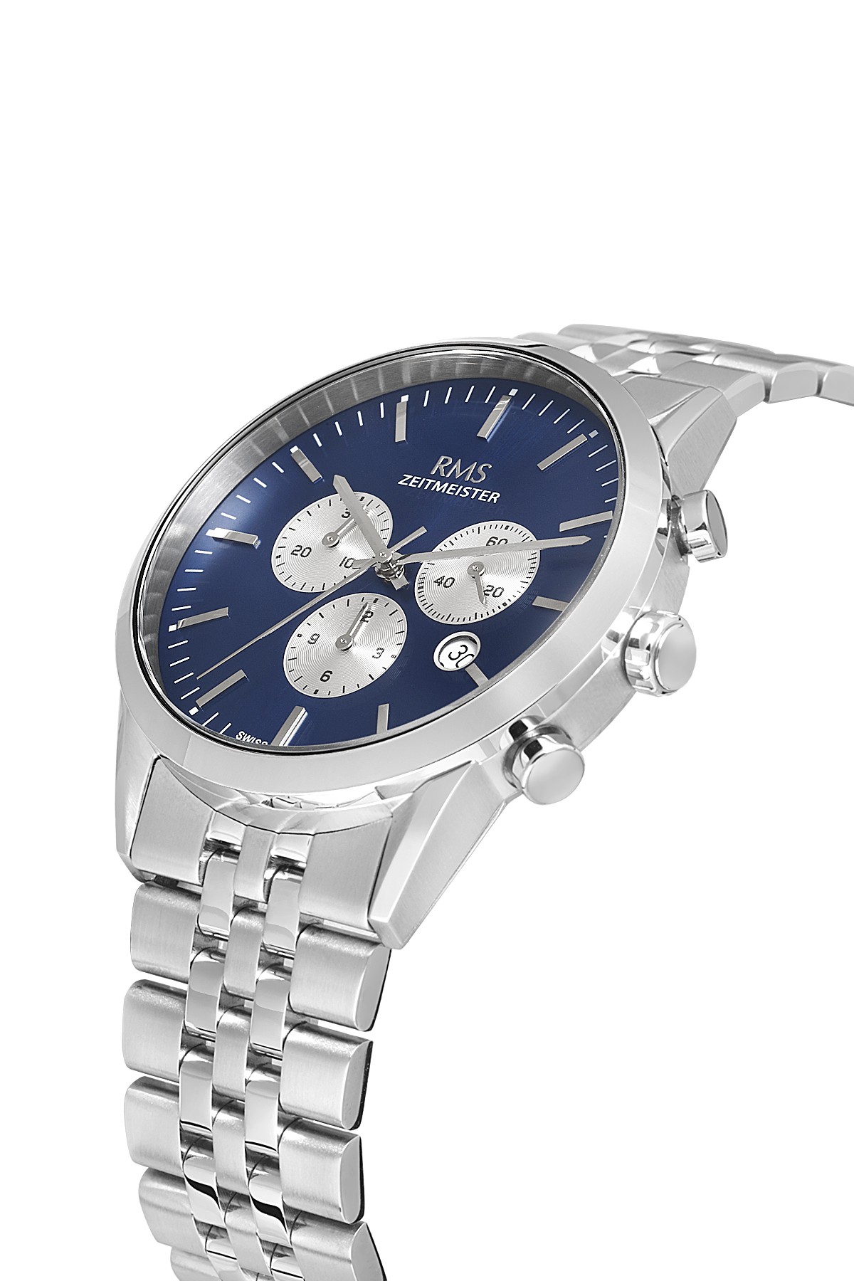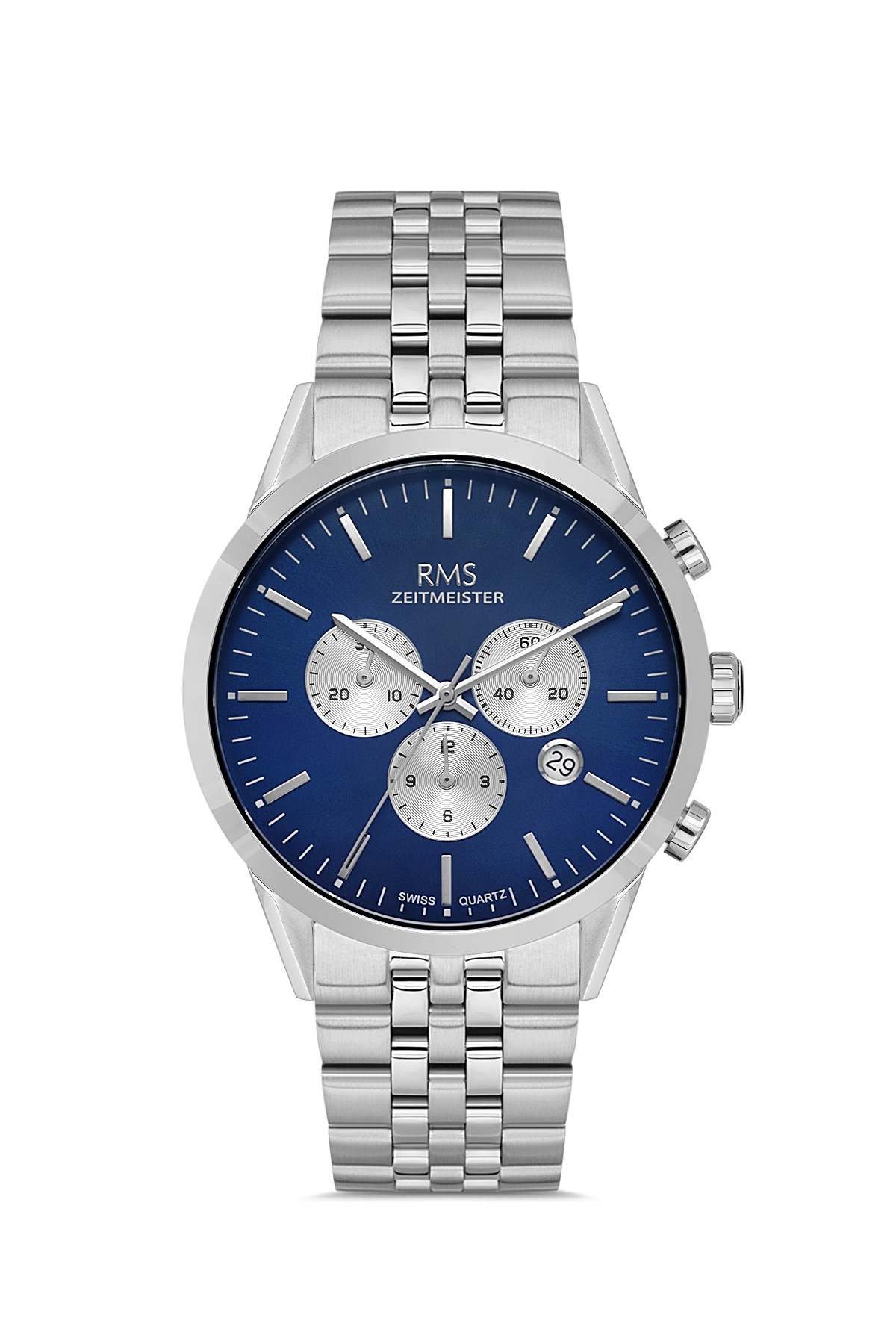 Erkek - Kronometre - Gümüş - Mavi̇ - Paslanmaz Masi̇f Çeli̇k - 5 Atm - Safi̇r Cam - Grand Romanson - 43