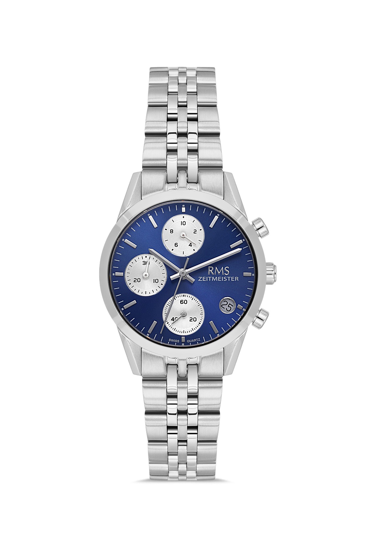 Kadın - Kronometre - Gümüş - Mavi̇ - Paslanmaz Masi̇f Çeli̇k - 5 Atm - Sertleşti̇ri̇lmi̇ş Mi̇neral Cam - Grand Romanson - 34