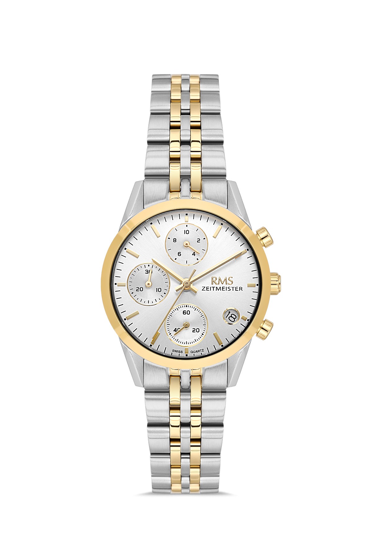 Kadın - Kronometre - Sari Beyaz - Gümüş - Paslanmaz Masi̇f Çeli̇k - 5 Atm - Sertleşti̇ri̇lmi̇ş Mi̇neral Cam - Grand Romanson - 34