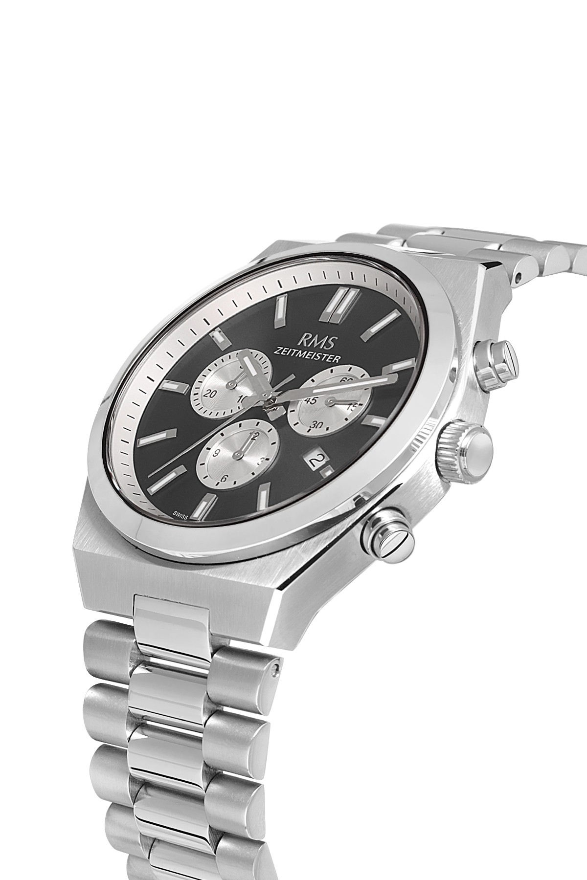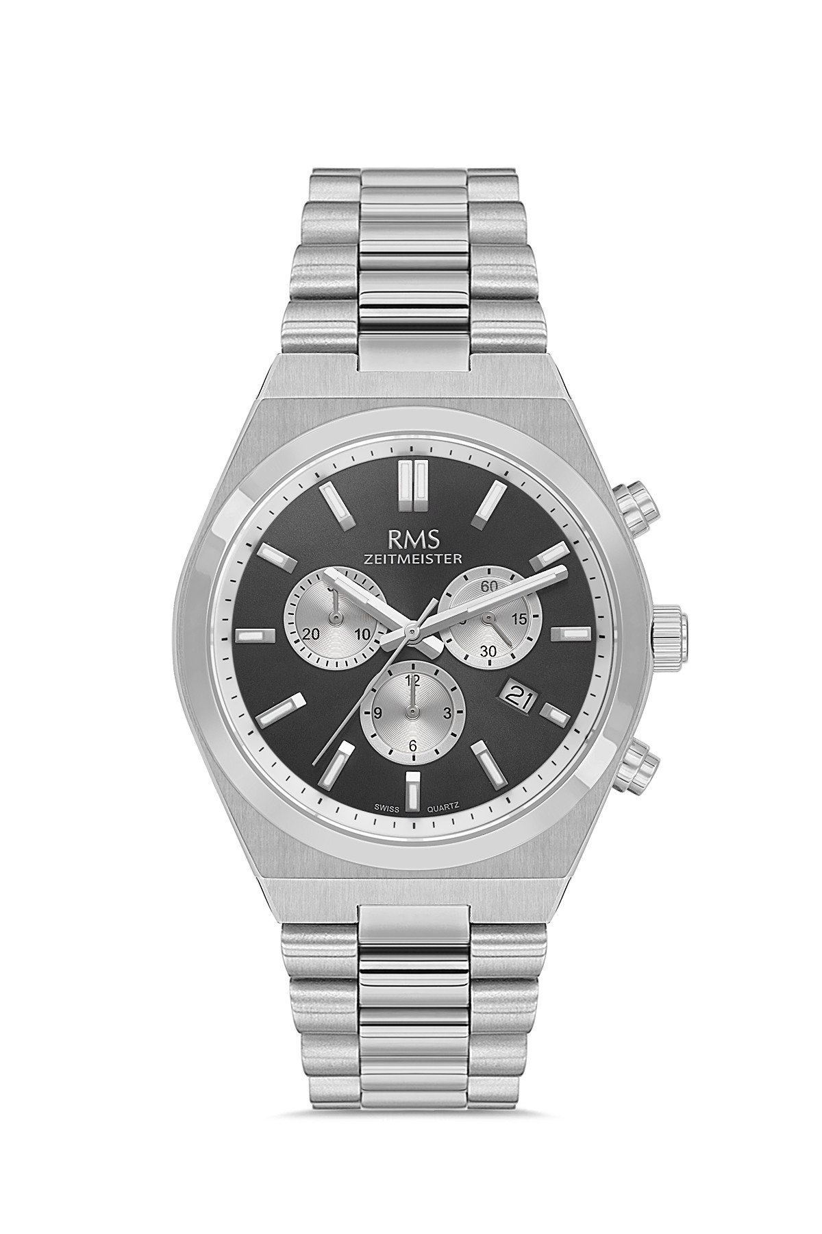 Erkek - Kronometre - Gümüş - Si̇yah - Paslanmaz Masi̇f Çeli̇k - 5 Atm - Safi̇r Cam - Grand Romanson - 45