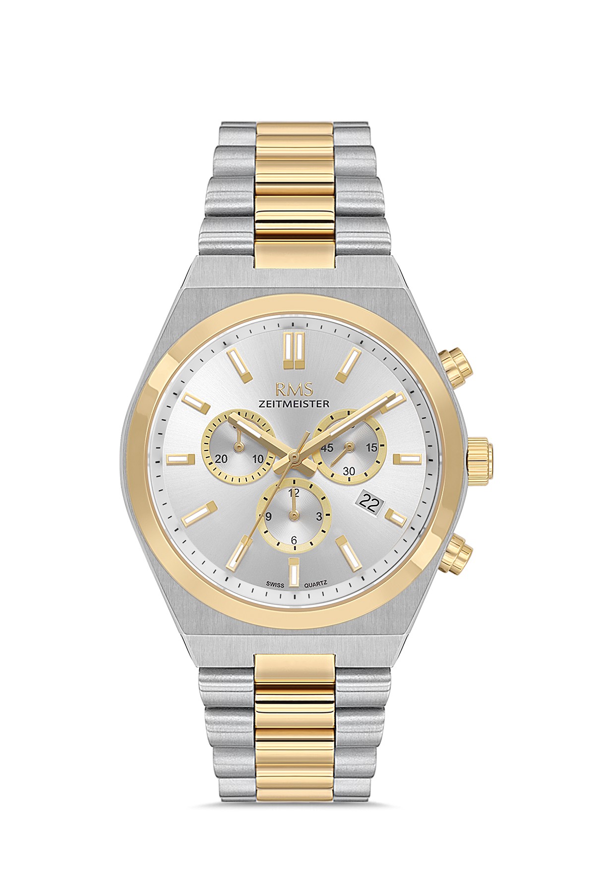 Erkek - Kronometre - Sari Beyaz - Gümüş - Paslanmaz Masi̇f Çeli̇k - 5 Atm - Safi̇r Cam - Grand Romanson - 45