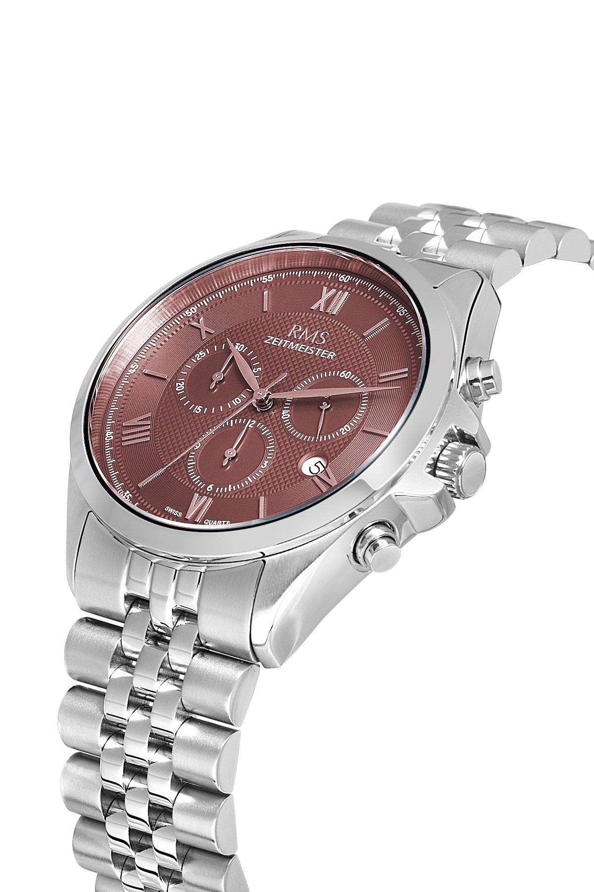 Erkek - Kronometre - Gümüş - Kahverengi̇ - Paslanmaz Masi̇f Çeli̇k - 5 Atm - Safi̇r Cam - Grand Romanson - 45