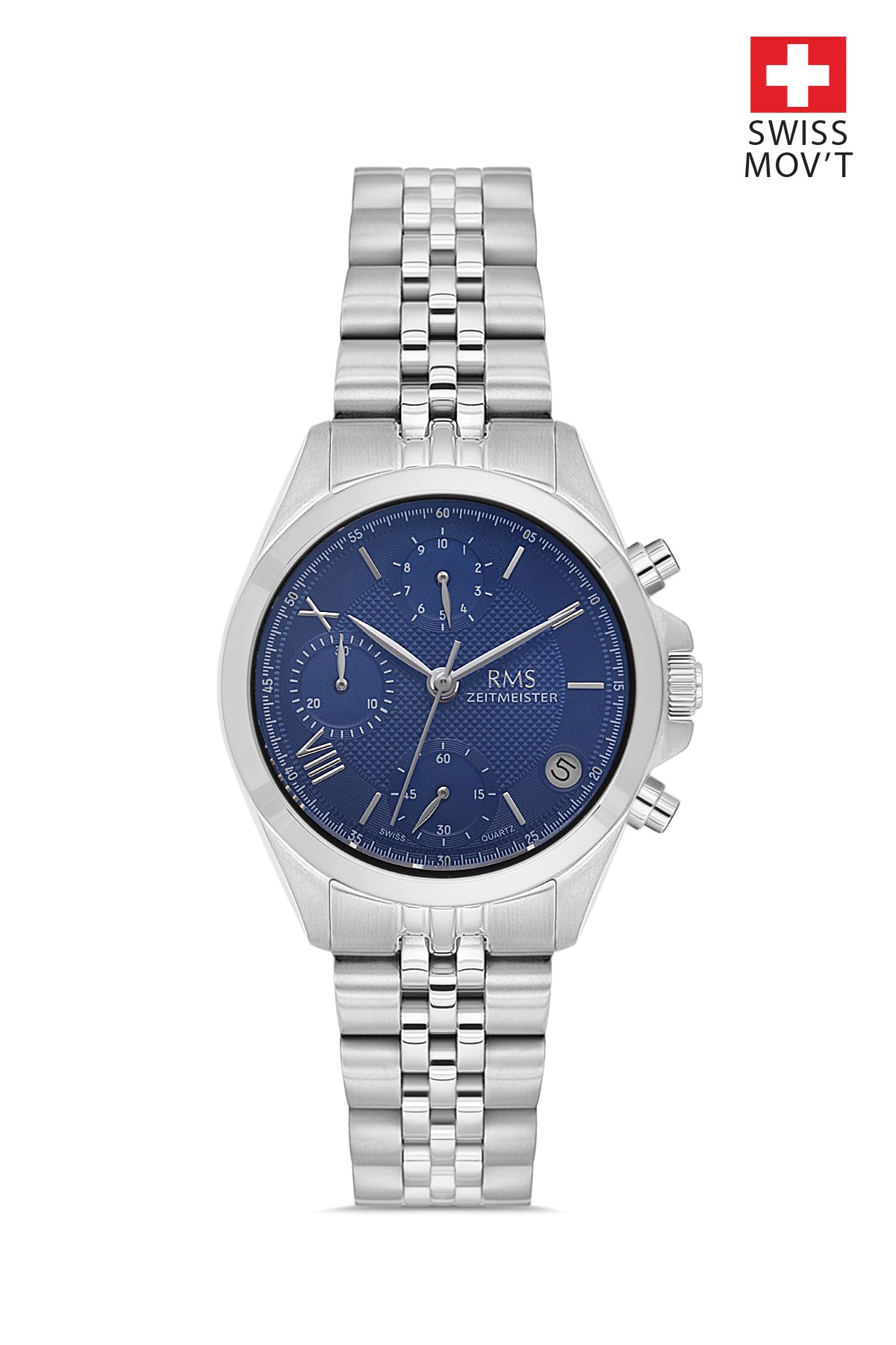Kadın - Kronometre - Gümüş - Mavi̇ - Paslanmaz Masi̇f Çeli̇k - 5 Atm - Safi̇r Cam - Grand Romanson - 34