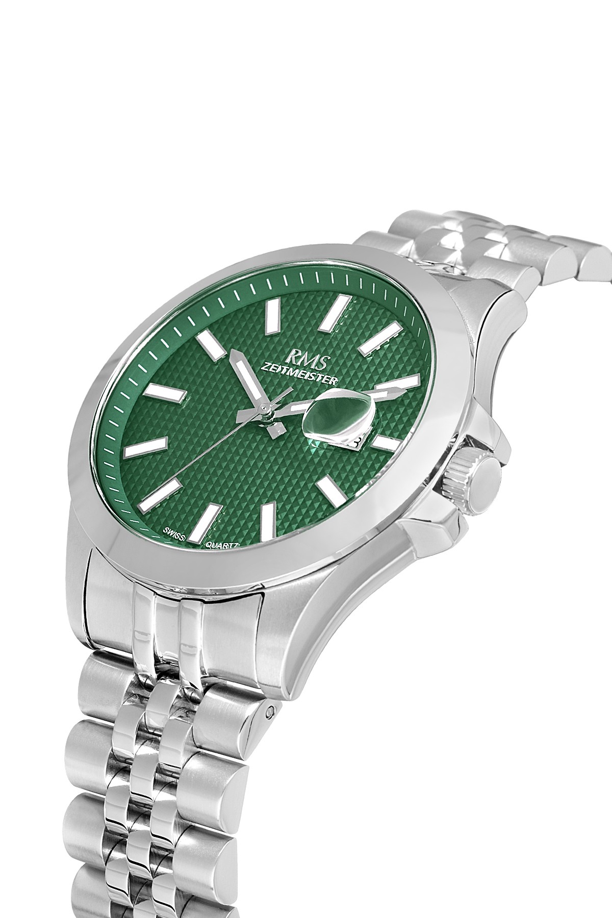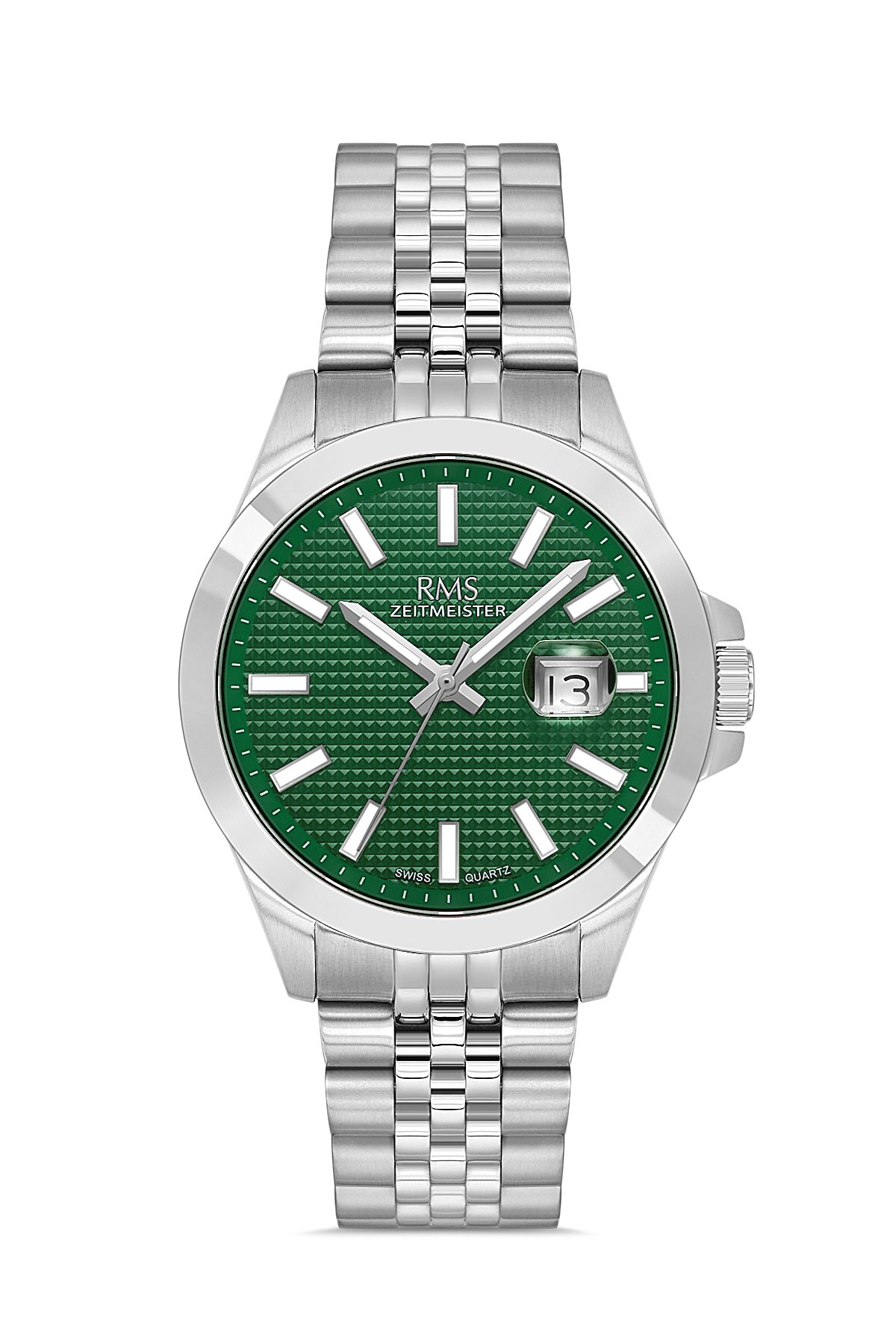 Erkek - Takvi̇mli̇ - Gümüş - Yeşi̇l - Paslanmaz Masi̇f Çeli̇k - 5 Atm - Safi̇r Cam - Grand Romanson - 41