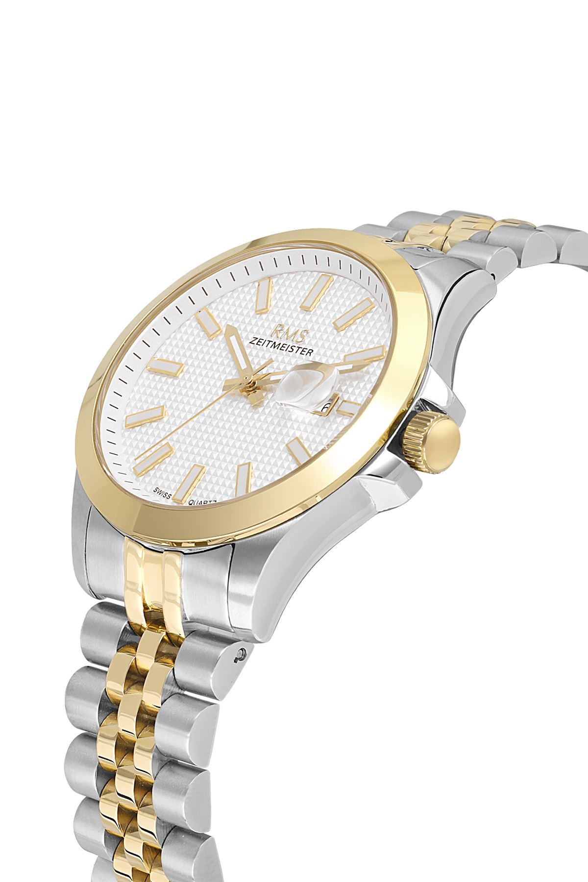 Erkek - Takvi̇mli̇ - Sari Beyaz - Gümüş - Paslanmaz Masi̇f Çeli̇k - 5 Atm - Safi̇r Cam - Grand Romanson - 41