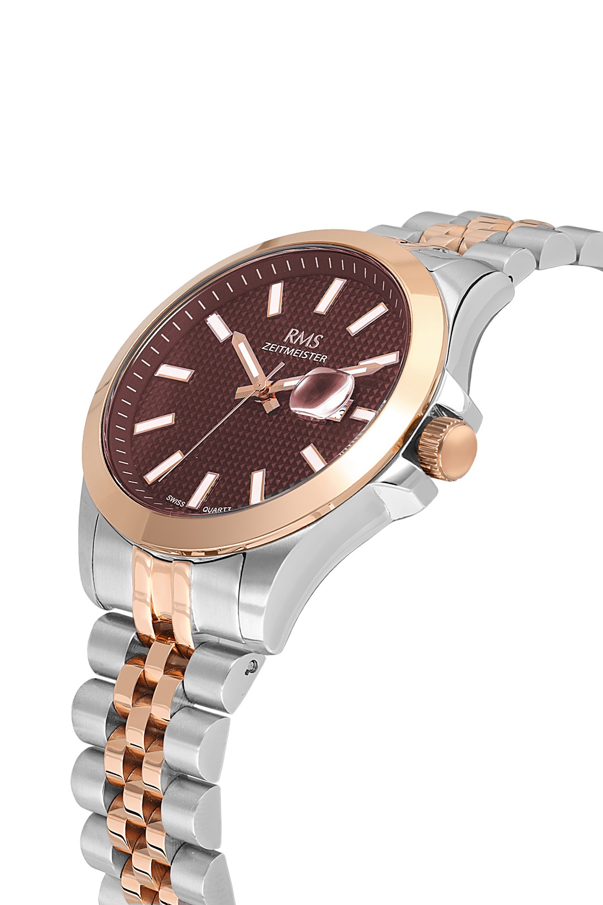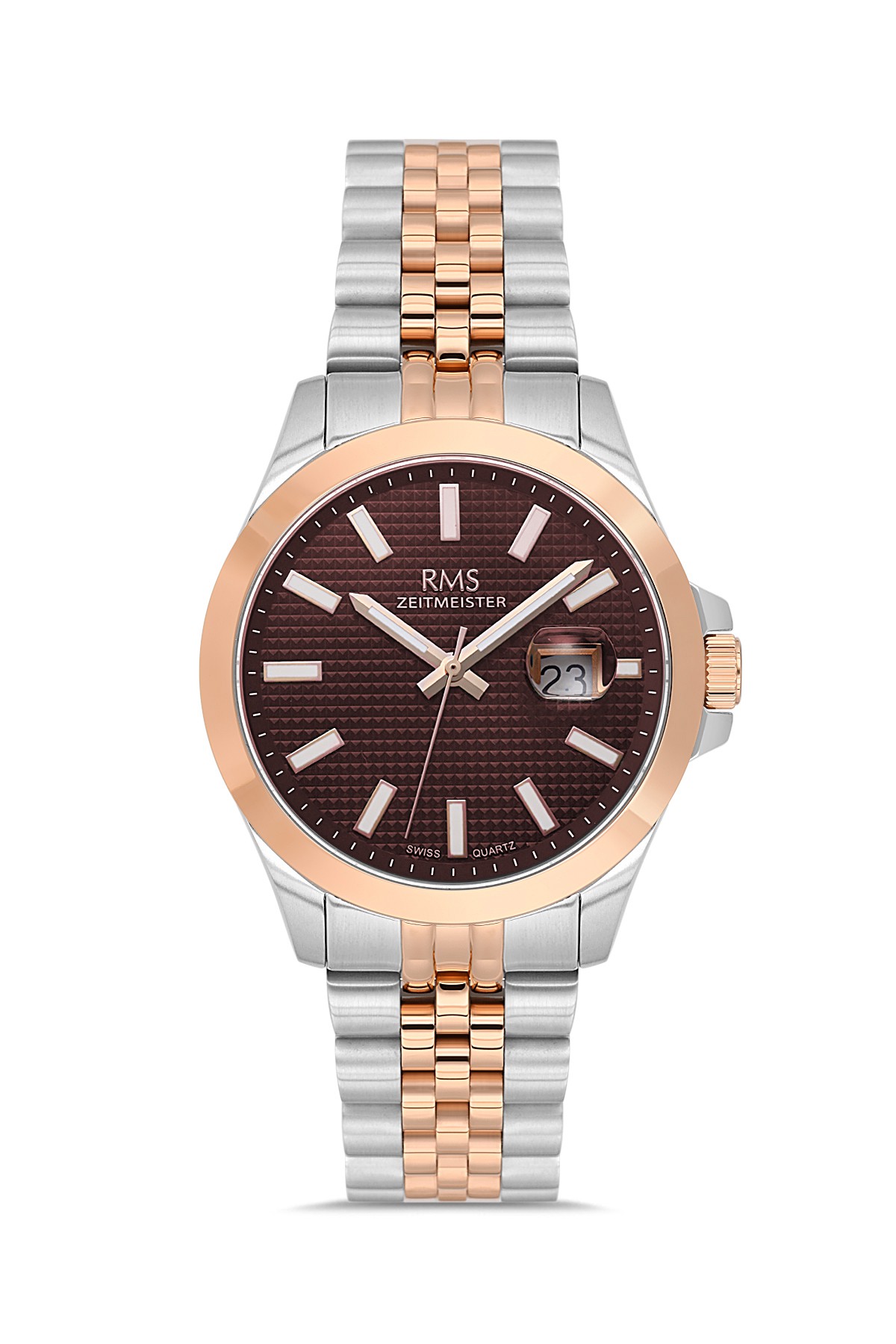 Erkek - Takvi̇mli̇ - Rose Beyaz - Kahverengi̇ - Paslanmaz Masi̇f Çeli̇k - 5 Atm - Safi̇r Cam - Grand Romanson - 41