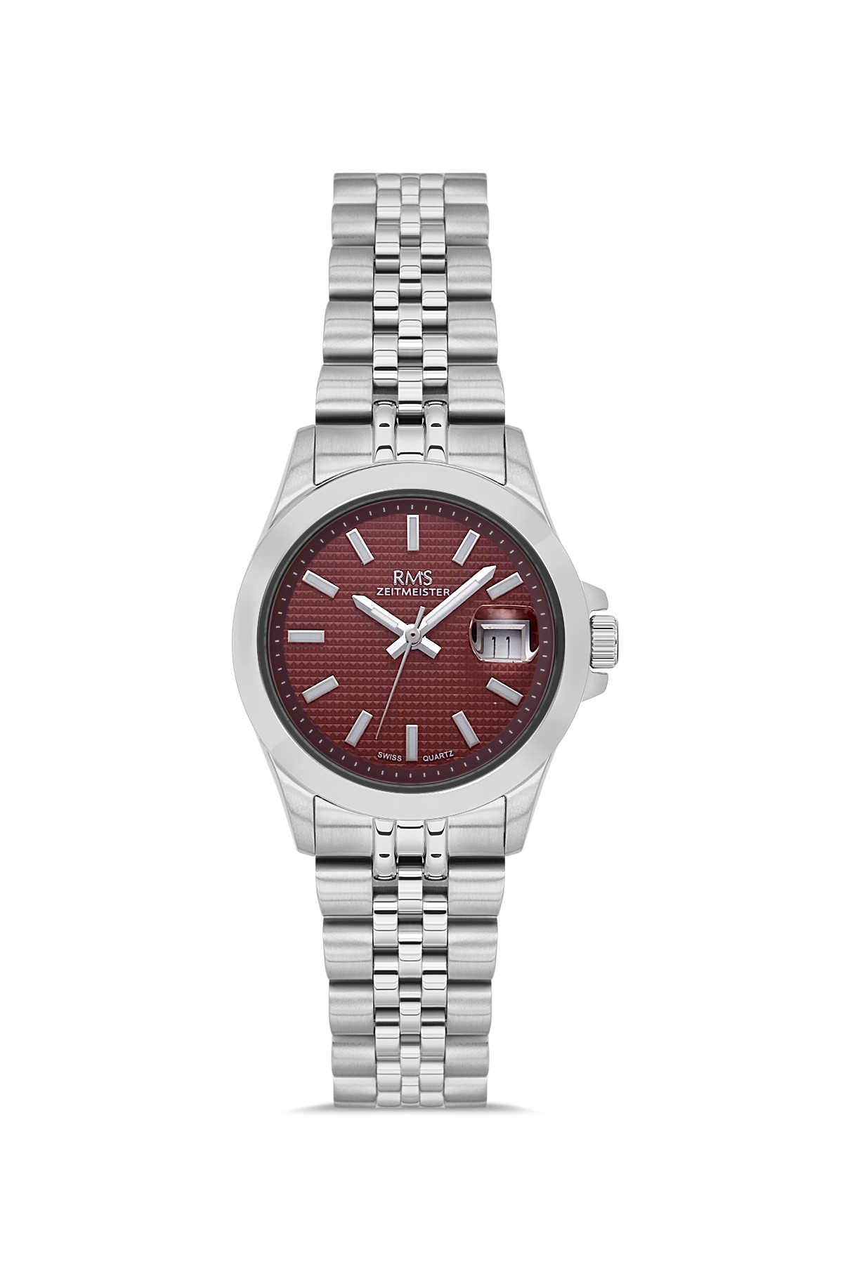 Kadın - Takvi̇mli̇ - Gümüş - Bordo - Paslanmaz Masi̇f Çeli̇k - 5 Atm - Safi̇r Cam - Grand Romanson - 31