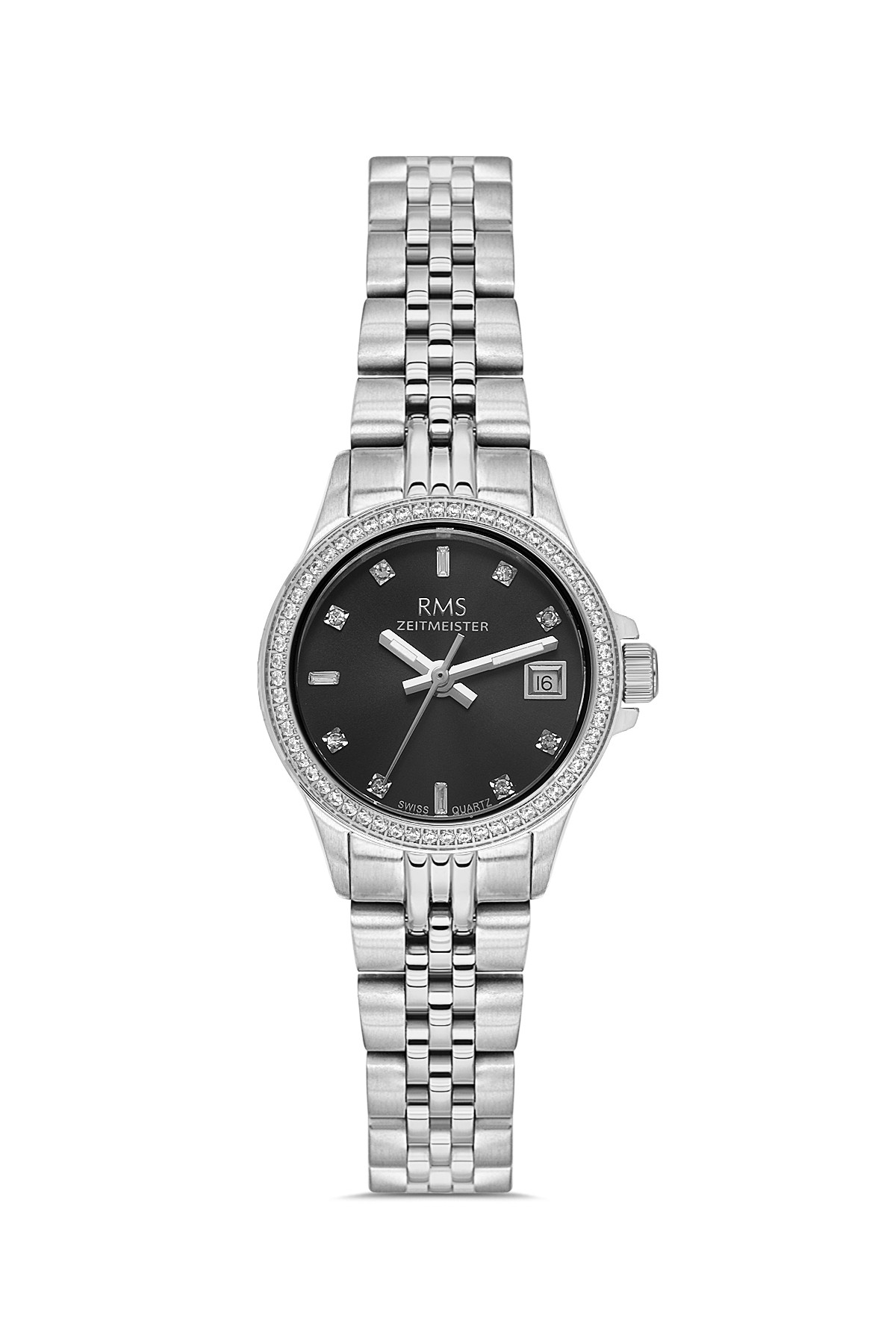Kadın - Taşli - Gümüş - Si̇yah - Paslanmaz Masi̇f Çeli̇k - 5 Atm - Safi̇r Cam - Grand Romanson - 24