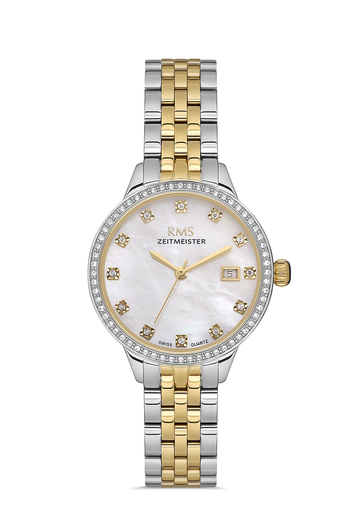 Kadın - Takvi̇mli̇ - Sari Beyaz - Gümüş - Paslanmaz Masi̇f Çeli̇k - 5 Atm - Safi̇r Cam - Grand Romanson - 30