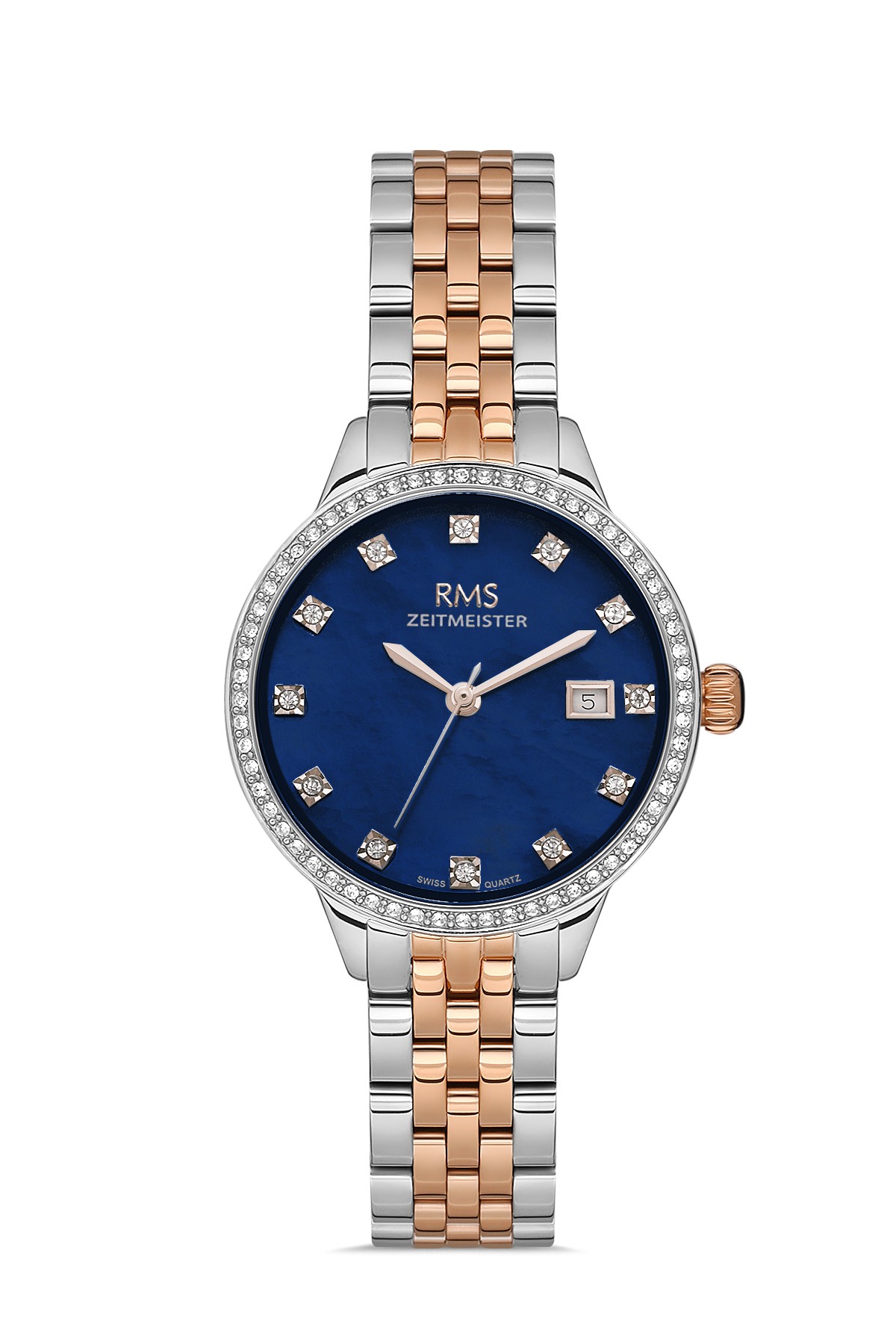 Kadın - Takvi̇mli̇ - Rose Beyaz - Mavi̇ - Paslanmaz Masi̇f Çeli̇k - 5 Atm - Safi̇r Cam - Grand Romanson - 30