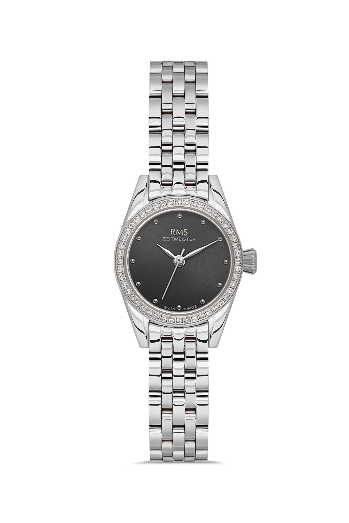 Kadın - Taşli - Gümüş - Si̇yah - Paslanmaz Masi̇f Çeli̇k - 5 Atm - Safi̇r Cam - Grand Romanson - 23