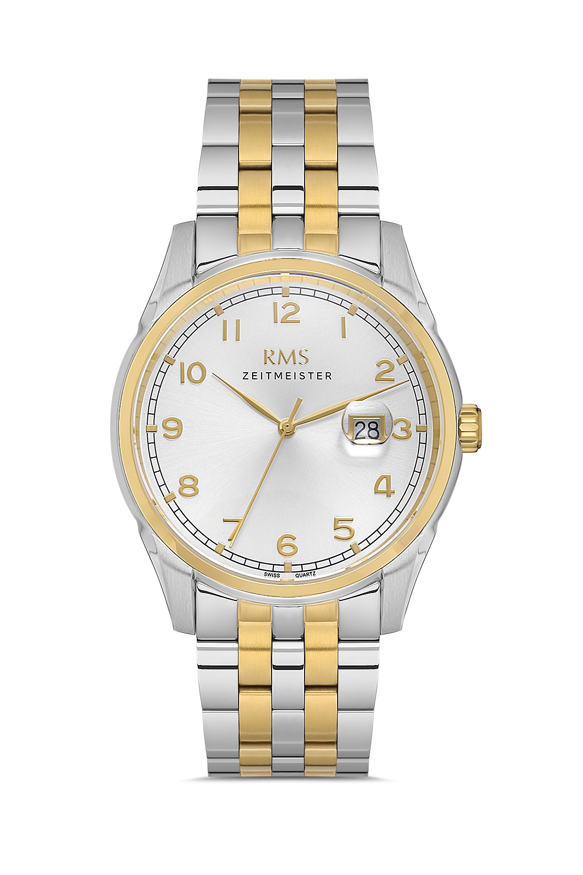 Erkek - Takvi̇mli̇ - Sari Beyaz - Gümüş - Paslanmaz Masi̇f Çeli̇k - 5 Atm - Sertleşti̇ri̇lmi̇ş Mi̇neral Cam - Grand Romanson - 43