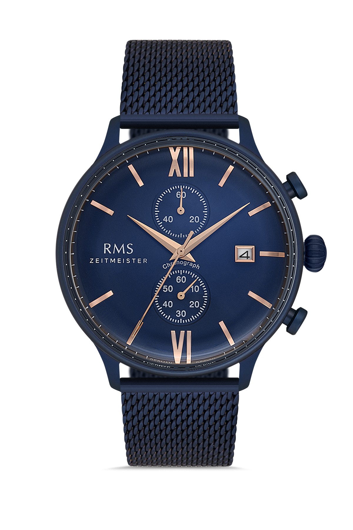 Erkek - Kronometre - Mavi̇ - Mavi̇ - Çeli̇k Örme Kordon - 5 Atm - Sertleşti̇ri̇lmi̇ş Mi̇neral Cam - Grand Romanson - 46
