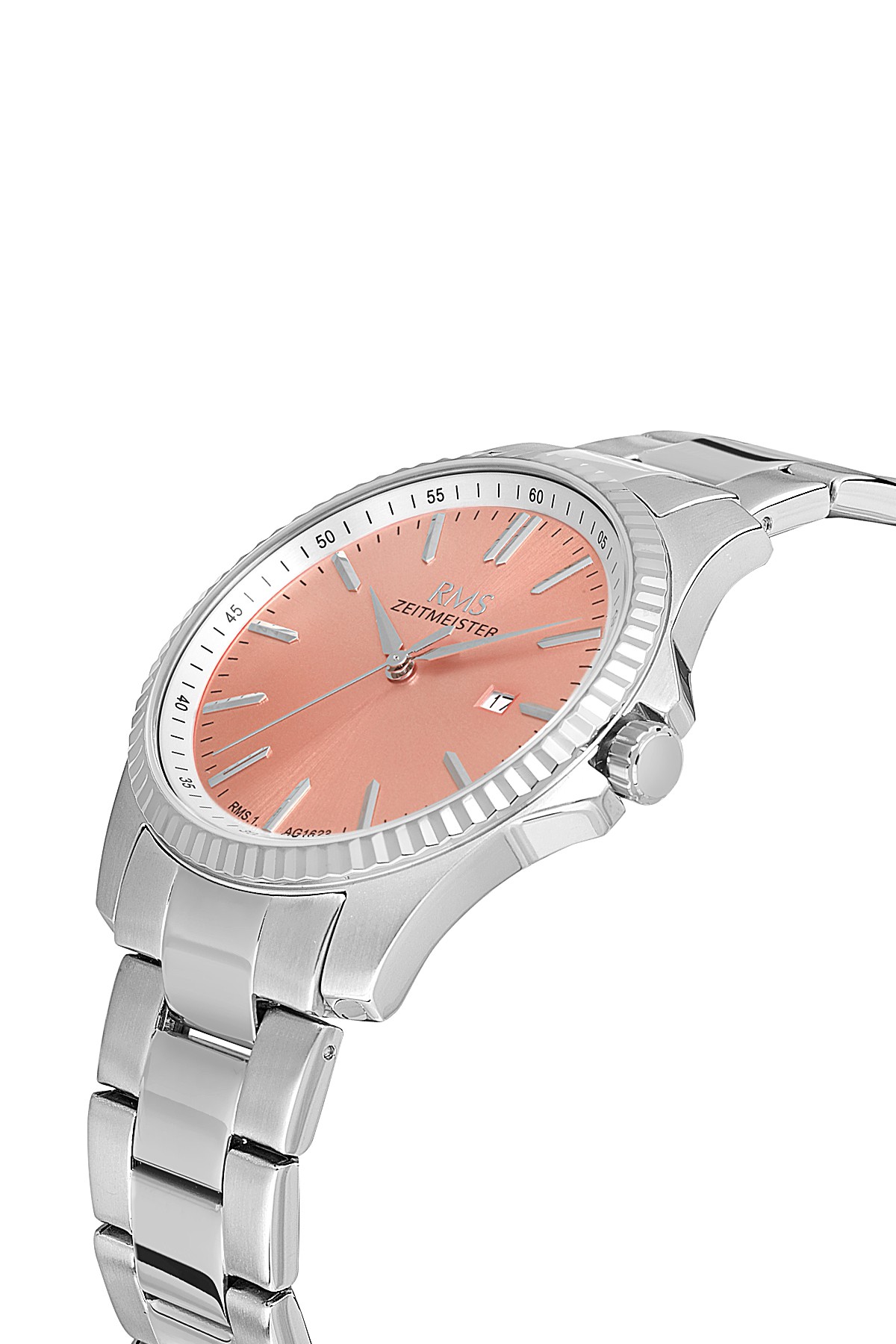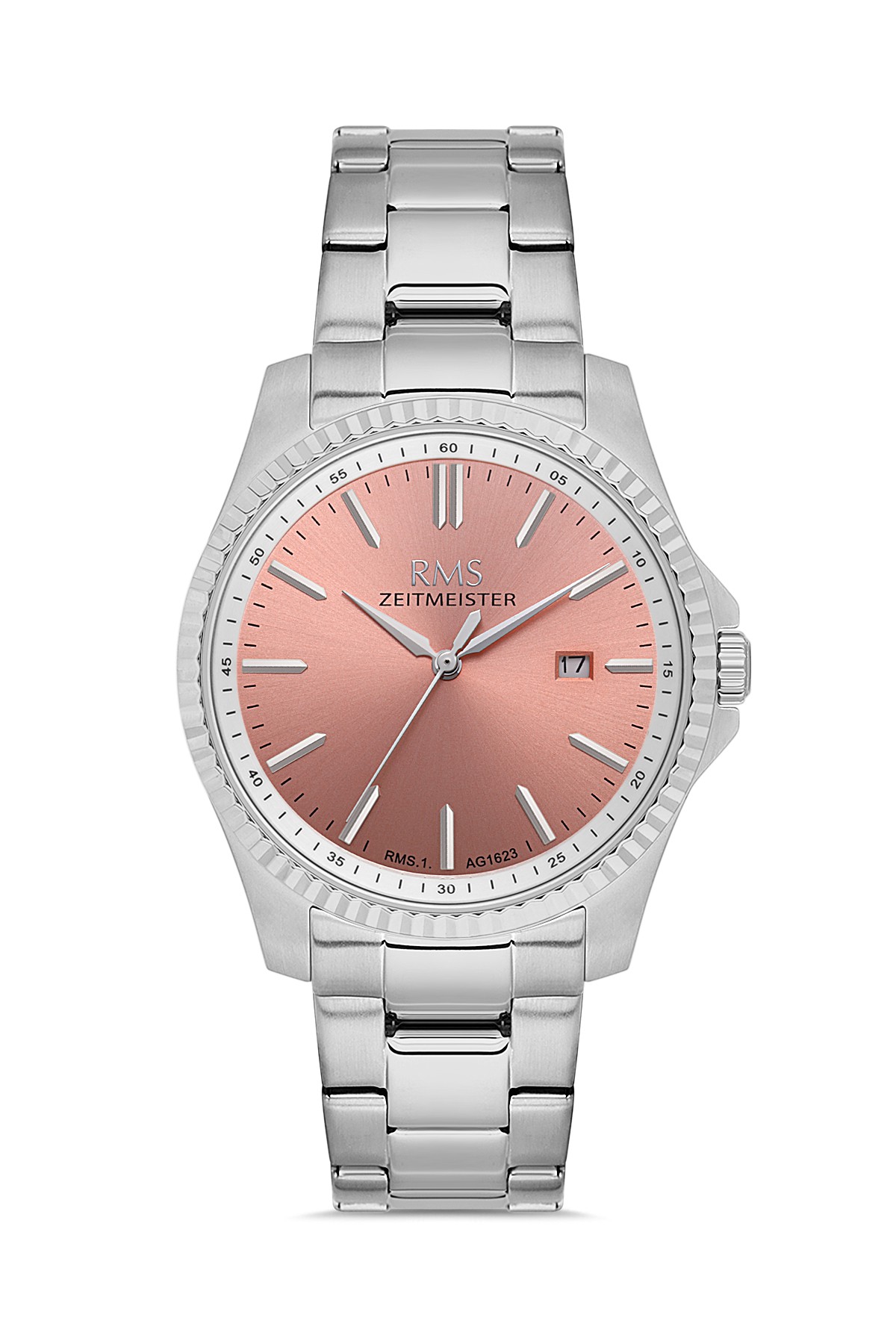 Erkek - Takvi̇mli̇ - Gümüş - Somon - Paslanmaz Masi̇f Çeli̇k - 5 Atm - Sertleşti̇ri̇lmi̇ş Mi̇neral Cam - Grand Romanson - 41