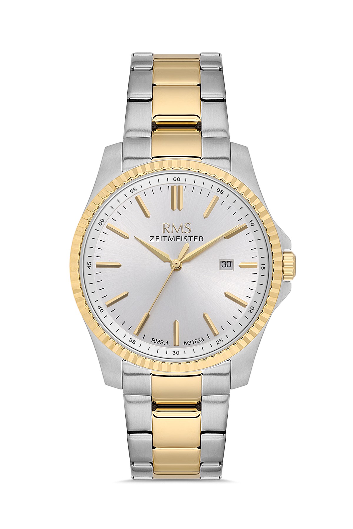 Erkek - Takvi̇mli̇ - Sari Beyaz - Gümüş - Paslanmaz Masi̇f Çeli̇k - 5 Atm - Sertleşti̇ri̇lmi̇ş Mi̇neral Cam - Grand Romanson - 41
