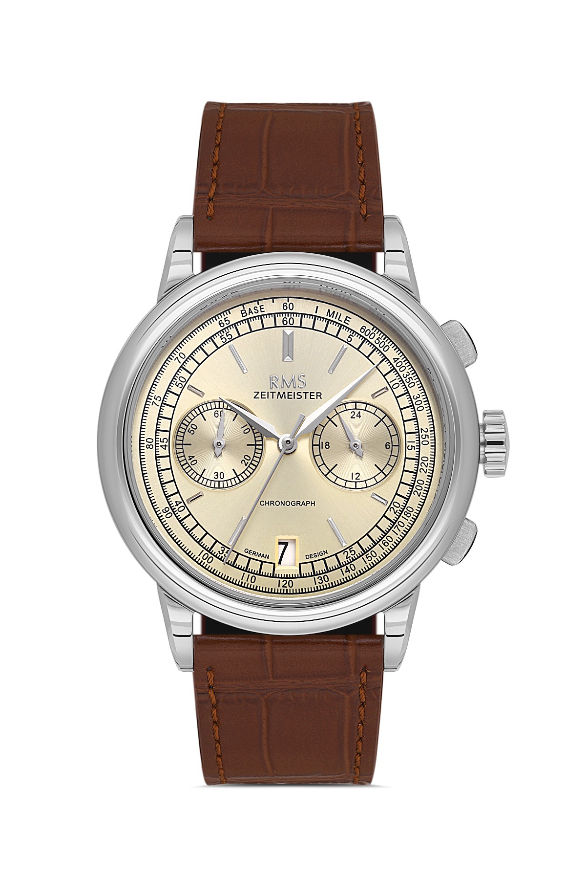 Erkek - Kronometre - Gümüş - Sari - Doğal Deri̇ Kordon - Kahverengi̇ - 3 Atm - Sertleşti̇ri̇lmi̇ş Mi̇neral Cam - Grand Romanson - 43