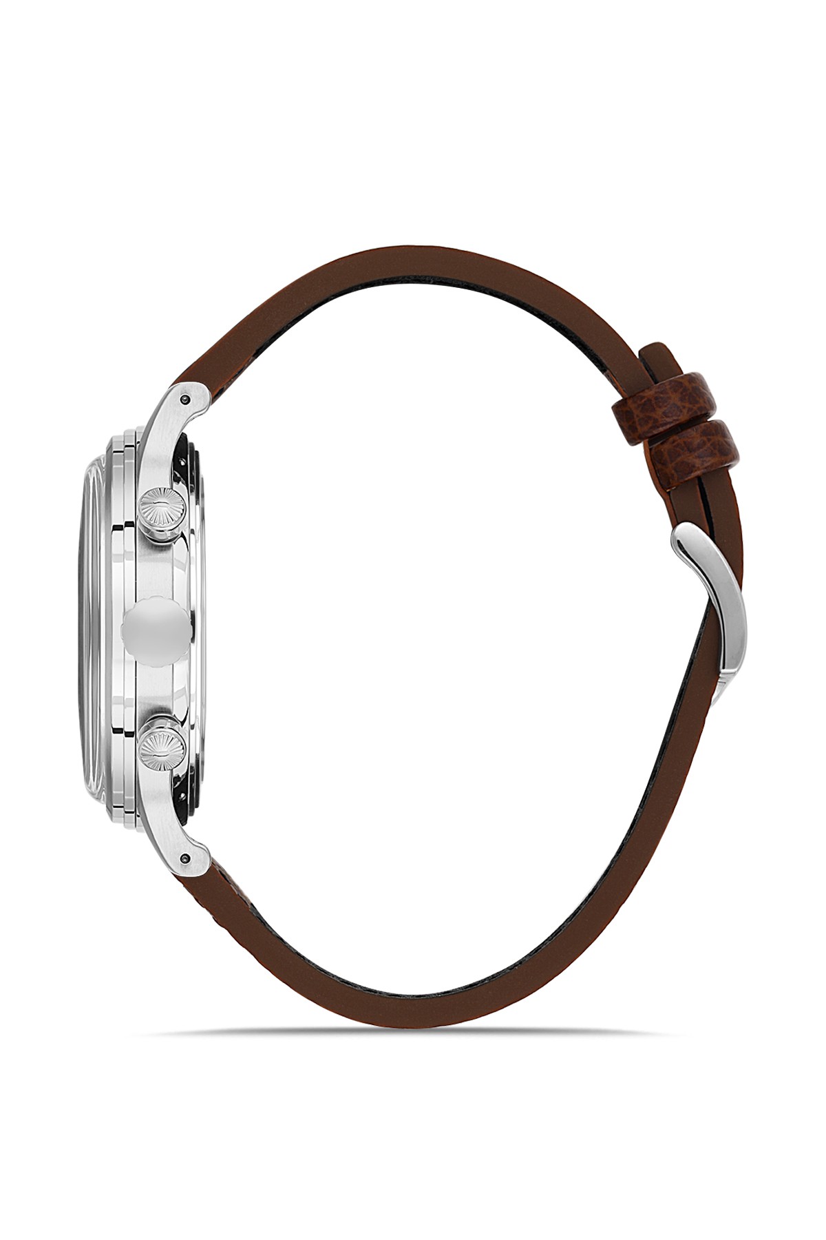 Erkek - Kronometre - Gümüş - Mavi̇ - Doğal Deri̇ Kordon - Kahverengi̇ - 5 Atm - Sertleşti̇ri̇lmi̇ş Mi̇neral Cam - Grand Romanson - 42