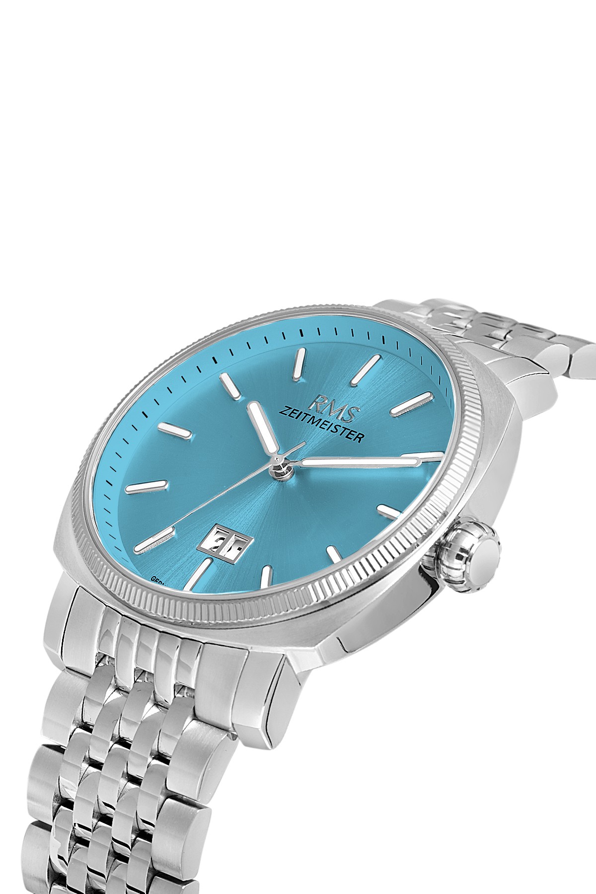 Erkek - Takvi̇mli̇ - Gümüş - Ti̇ffany Mavi̇ - Paslanmaz Masi̇f Çeli̇k - 5 Atm - Sertleşti̇ri̇lmi̇ş Mi̇neral Cam - Grand Romanson - 45