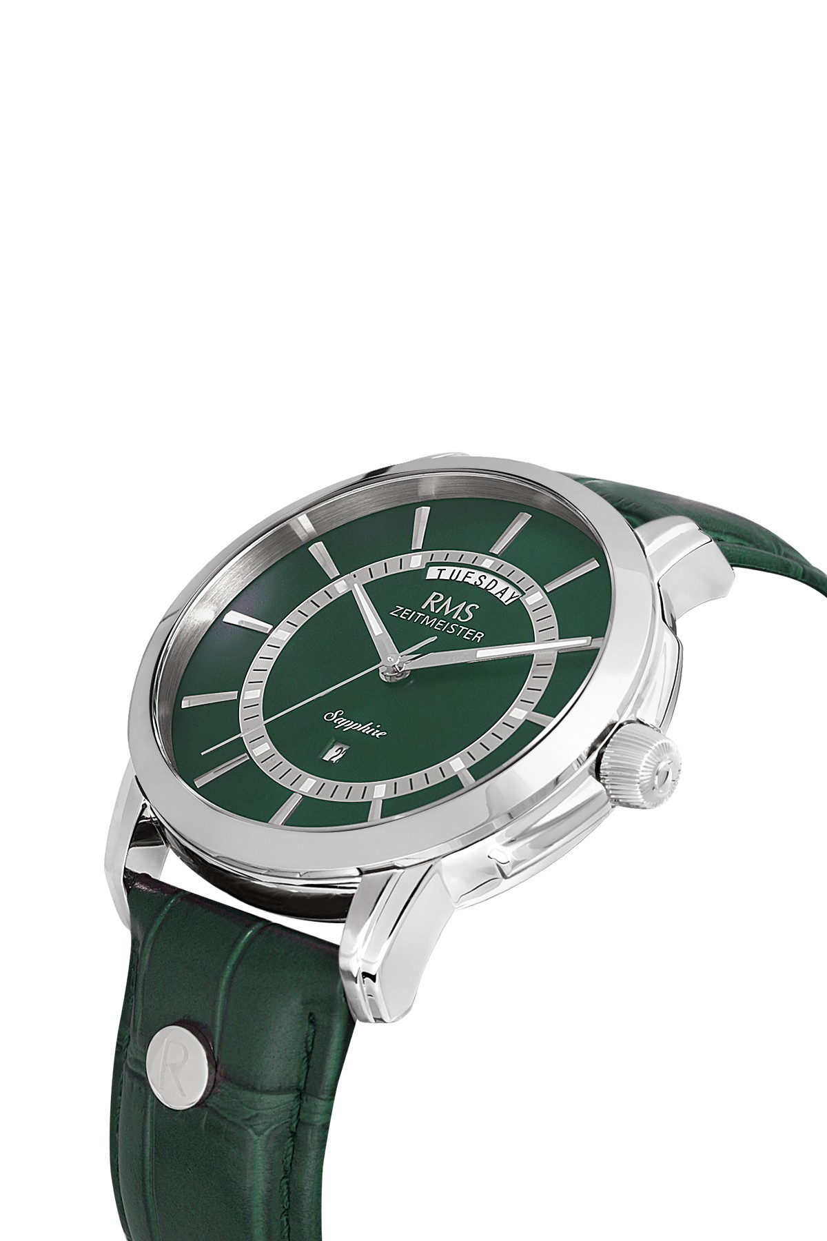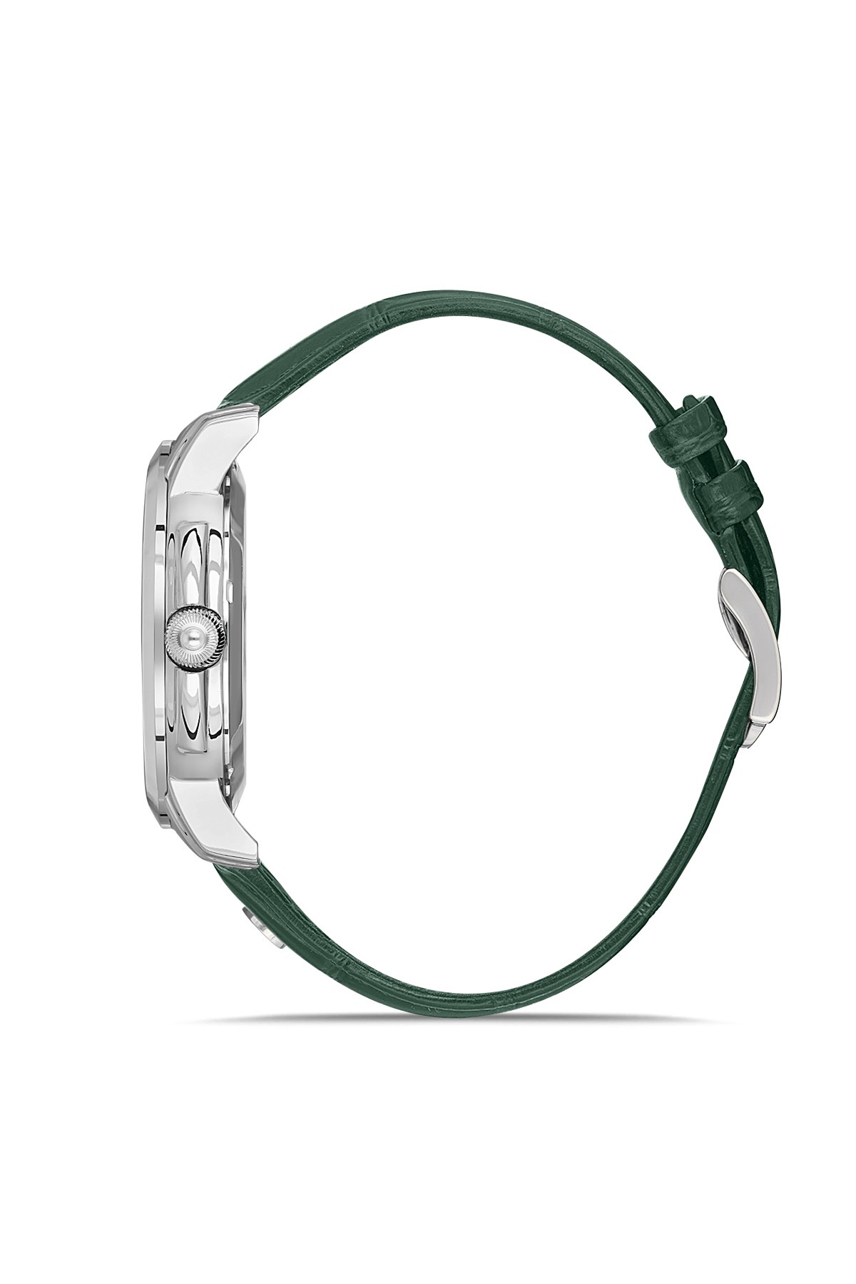 Erkek - Takvi̇mli̇ - Gümüş - Yeşi̇l - Doğal Deri̇ Kordon - Yeşi̇l - 5 Atm - Safi̇r Cam - Grand Romanson - 44