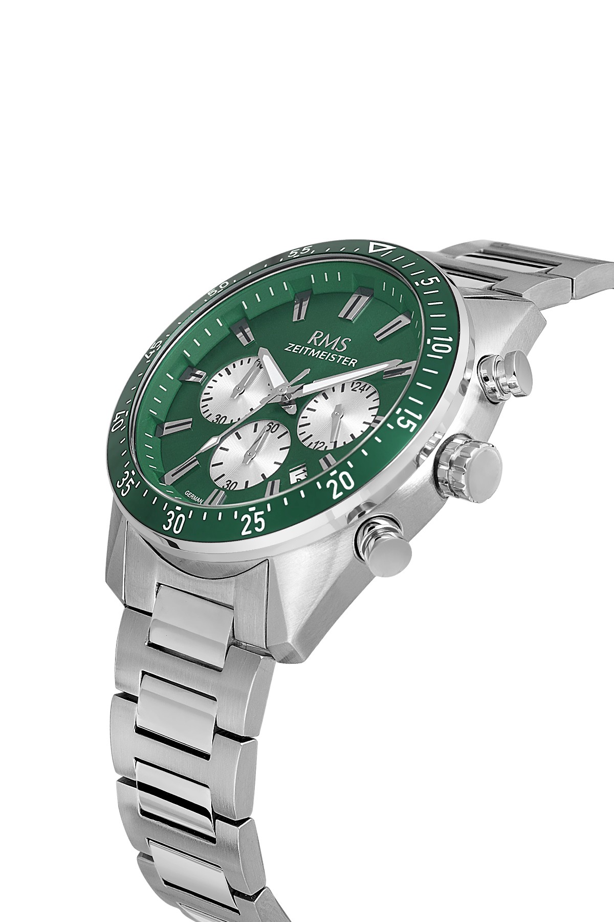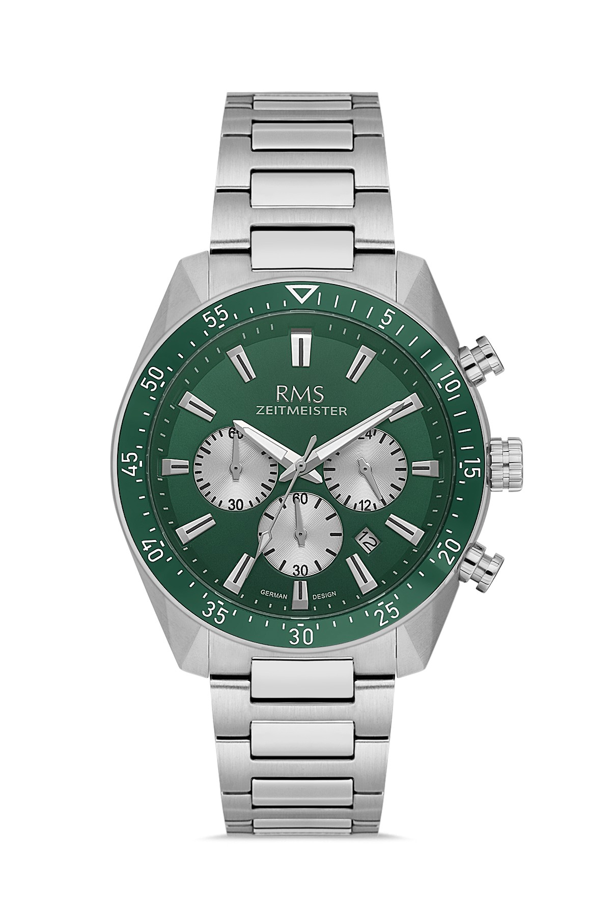 Erkek - Kronometre - Gümüş - Yeşi̇l - Paslanmaz Masi̇f Çeli̇k - 5 Atm - Sertleşti̇ri̇lmi̇ş Mi̇neral Cam - Grand Romanson - 45