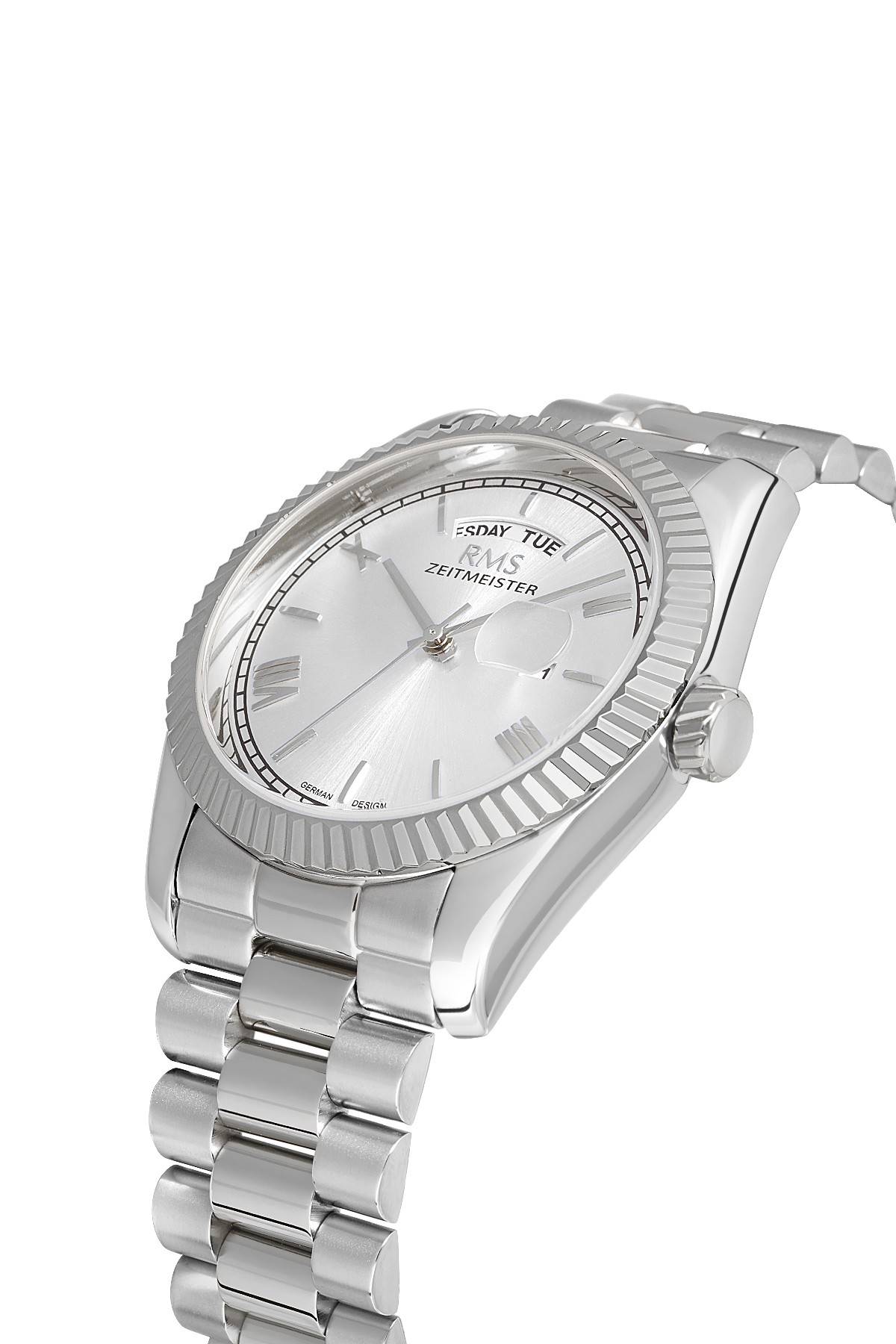 Erkek - Takvi̇mli̇ - Gümüş - Gümüş - Paslanmaz Masi̇f Çeli̇k - 5 Atm - Sertleşti̇ri̇lmi̇ş Mi̇neral Cam - Grand Romanson - 43