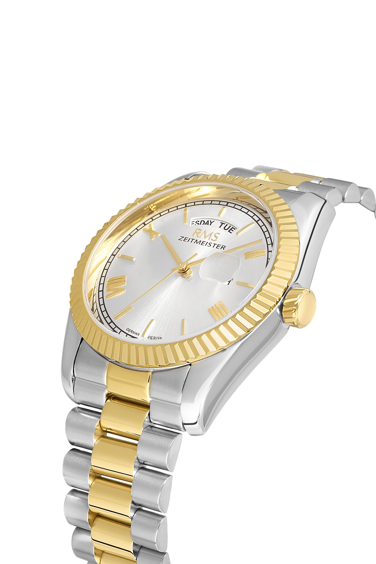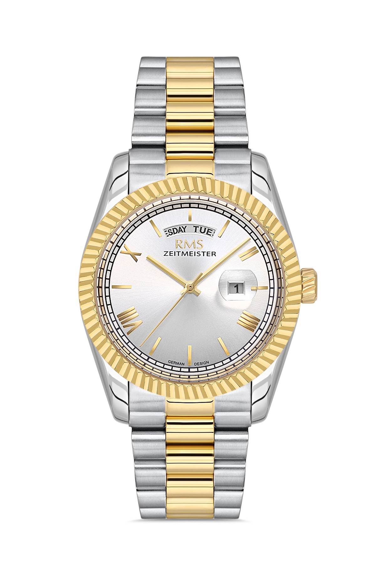 Erkek - Takvi̇mli̇ - Sari Beyaz - Gümüş - Paslanmaz Masi̇f Çeli̇k - 5 Atm - Sertleşti̇ri̇lmi̇ş Mi̇neral Cam - Grand Romanson - 43