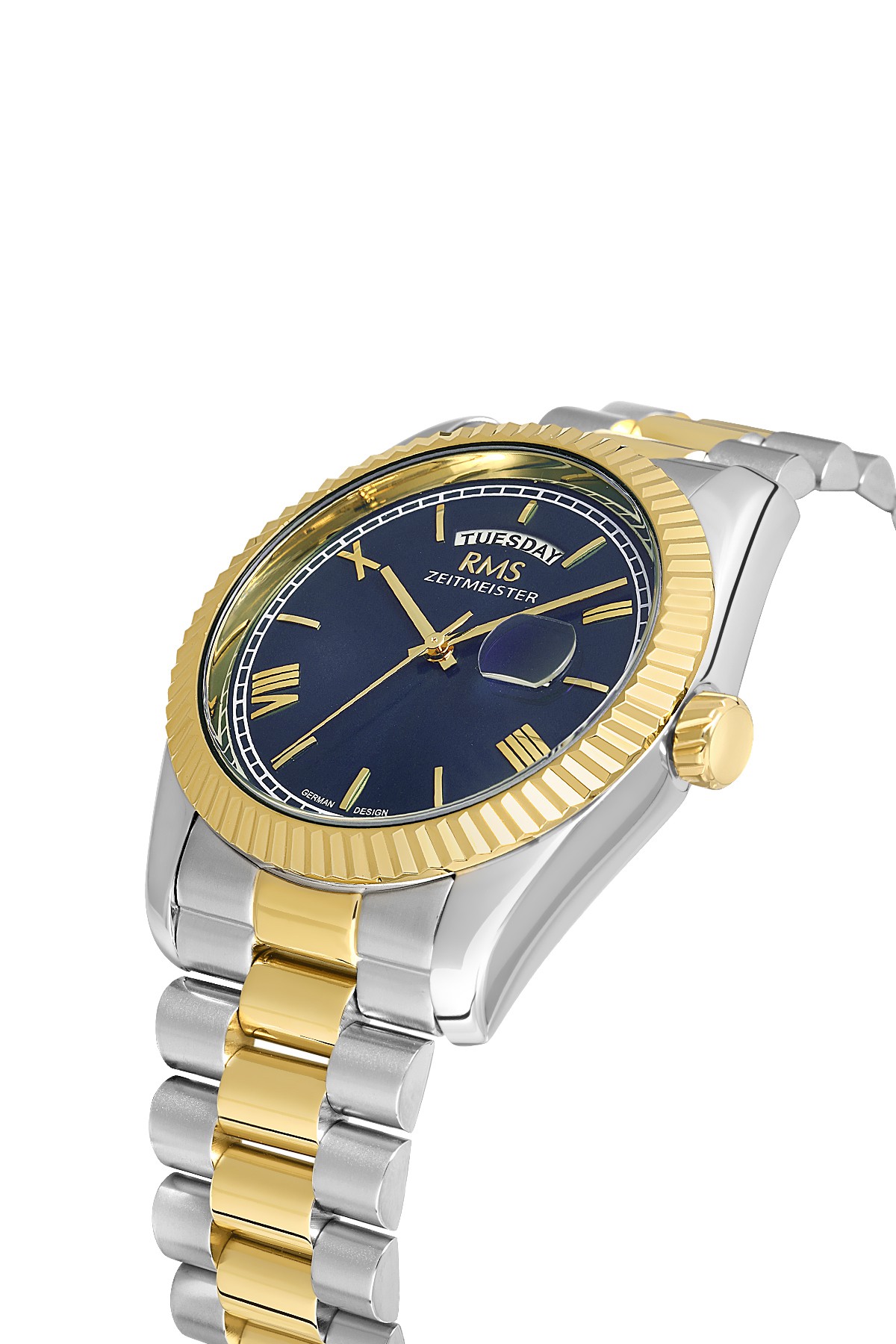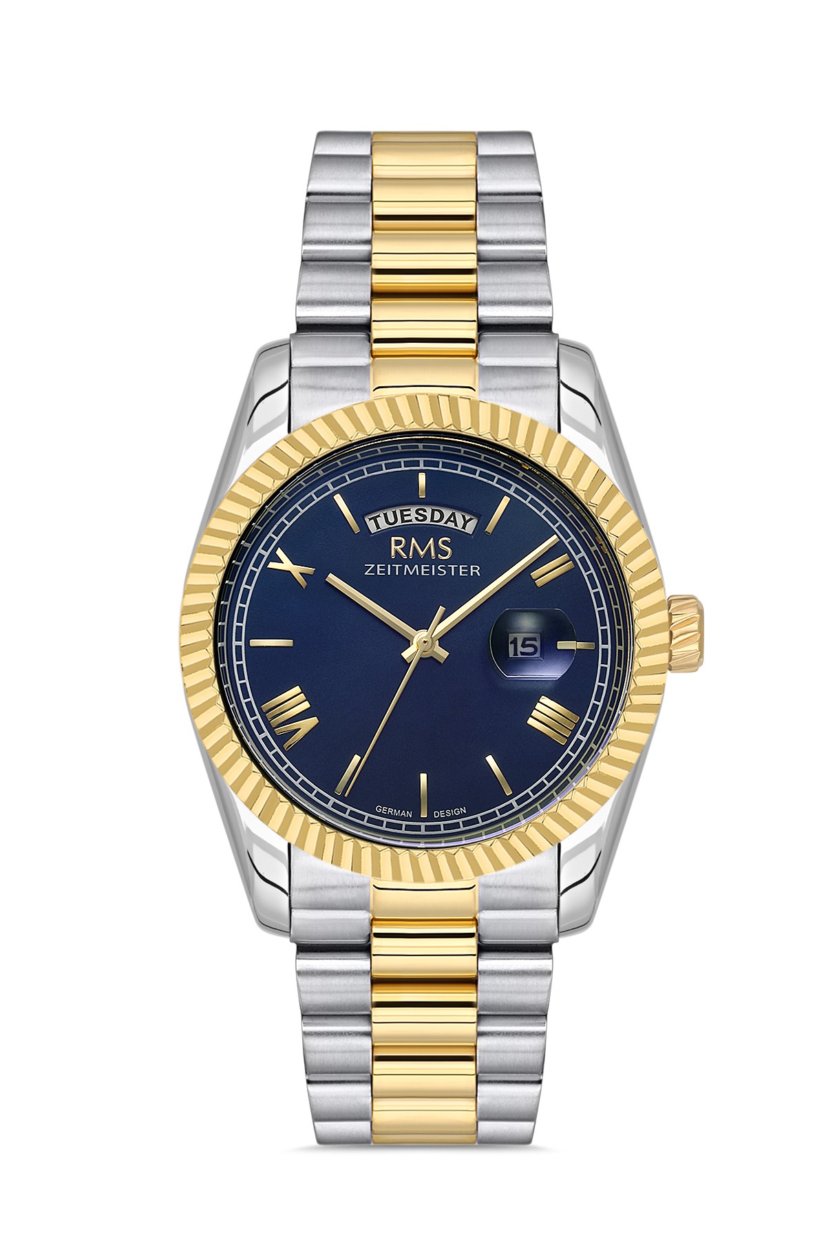 Erkek - Takvi̇mli̇ - Sari Beyaz - Mavi̇ - Paslanmaz Masi̇f Çeli̇k - 5 Atm - Sertleşti̇ri̇lmi̇ş Mi̇neral Cam - Grand Romanson - 43