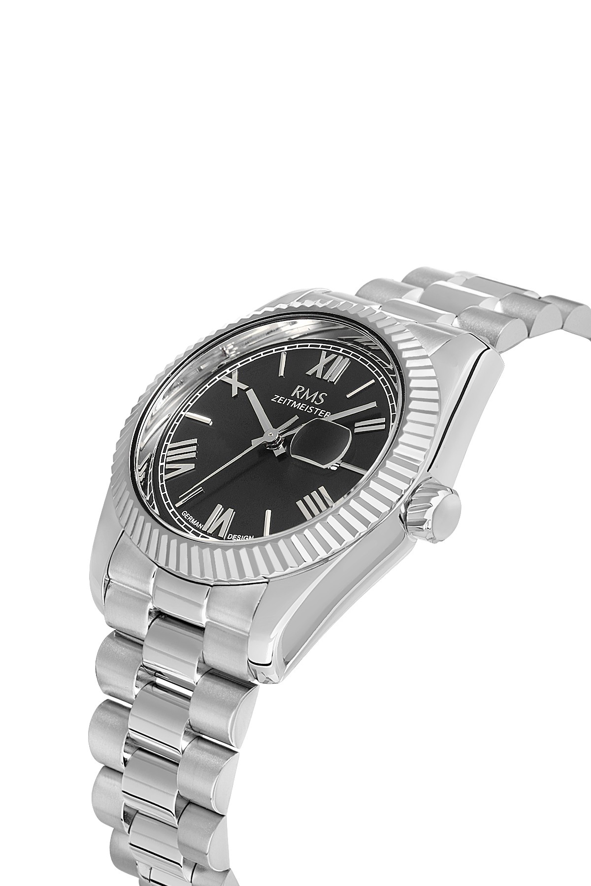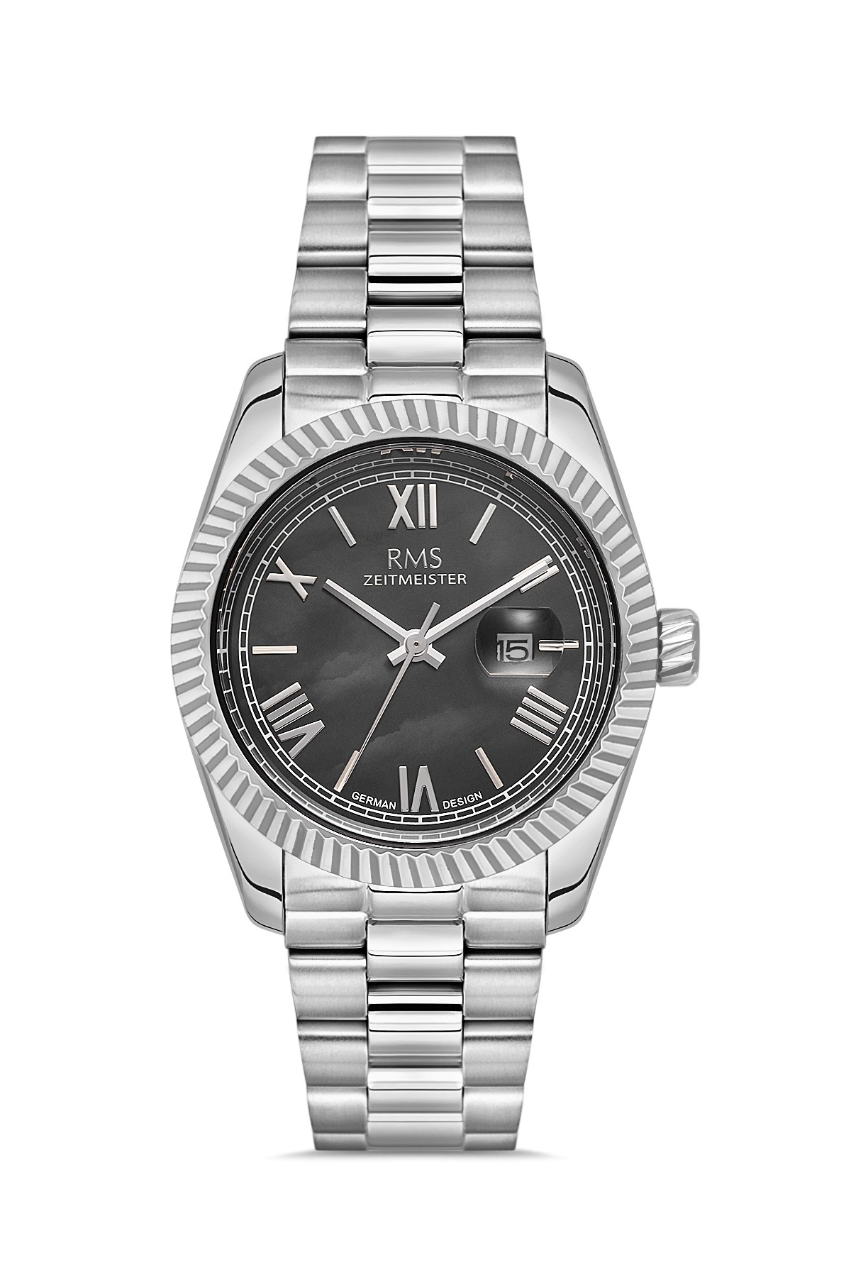 Kadın - Takvi̇mli̇ - Gümüş - Si̇yah - Paslanmaz Masi̇f Çeli̇k - 5 Atm - Sertleşti̇ri̇lmi̇ş Mi̇neral Cam - Grand Romanson - 35