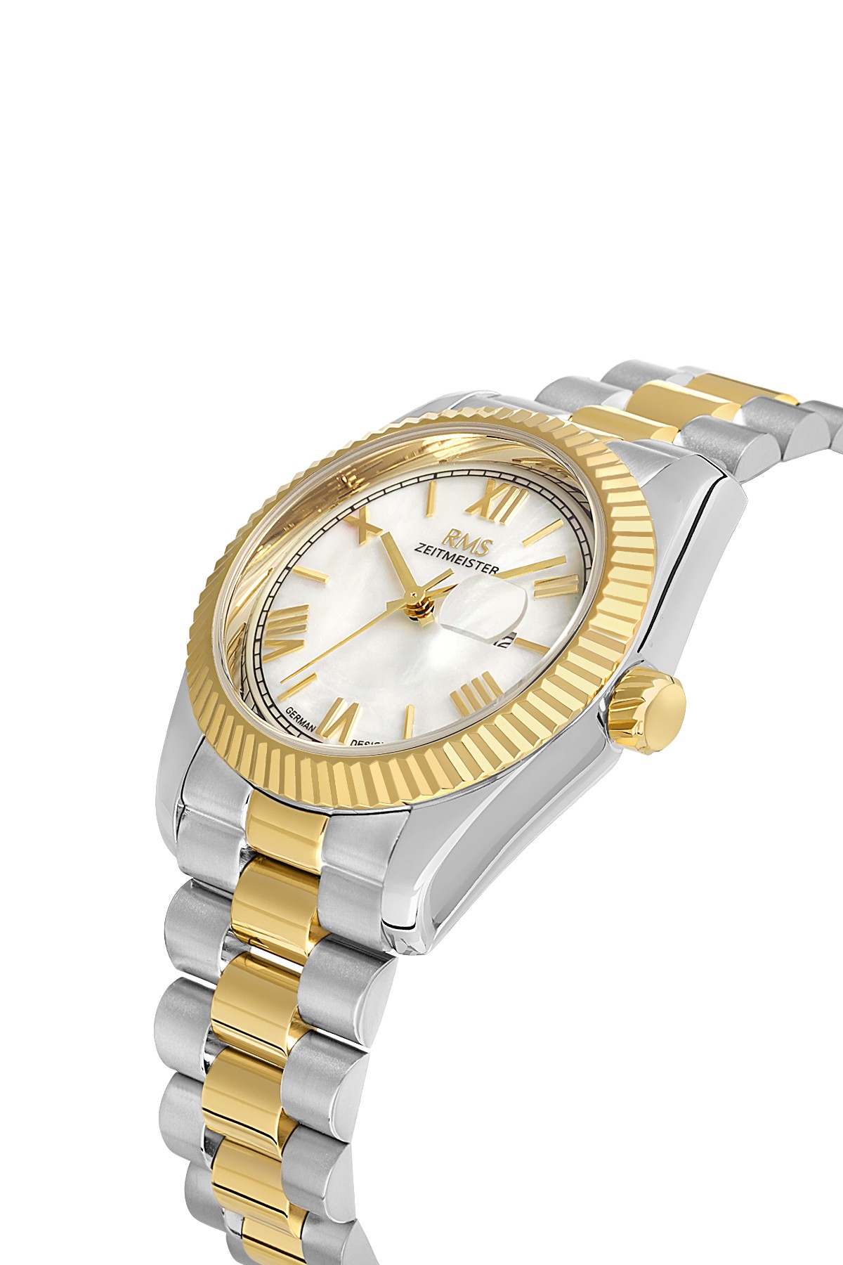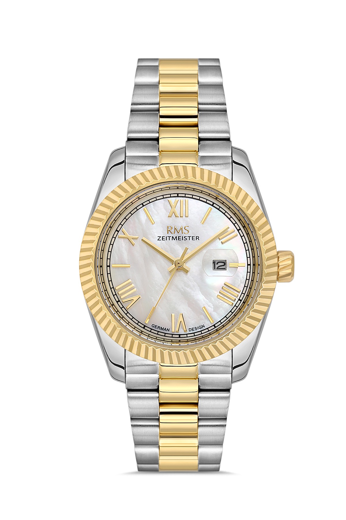 Kadın - Takvi̇mli̇ - Sari Beyaz - Gümüş - Paslanmaz Masi̇f Çeli̇k - 5 Atm - Sertleşti̇ri̇lmi̇ş Mi̇neral Cam - Grand Romanson - 35