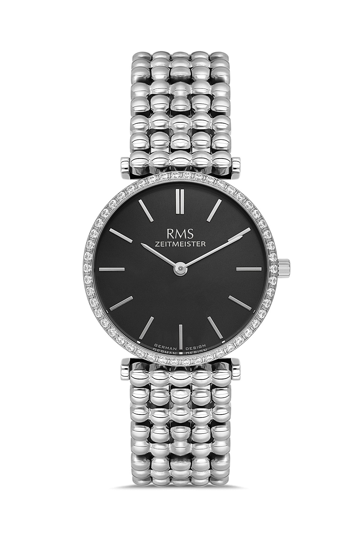Kadın - Taşli - Gümüş - Si̇yah - Paslanmaz Masi̇f Çeli̇k - 5 Atm - Sertleşti̇ri̇lmi̇ş Mi̇neral Cam - Grand Romanson - 30