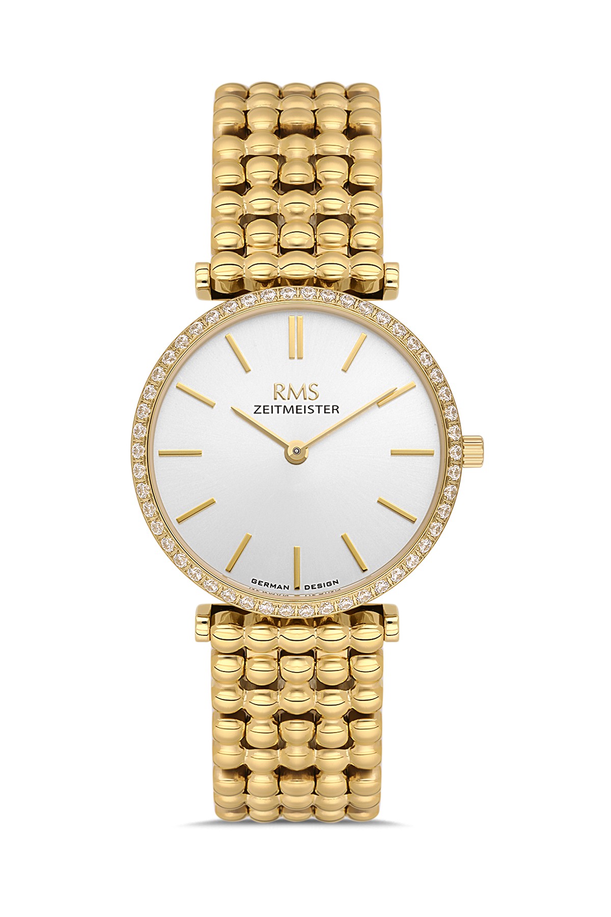 Kadın - Taşli - Sari - Gümüş - Paslanmaz Masi̇f Çeli̇k - 5 Atm - Sertleşti̇ri̇lmi̇ş Mi̇neral Cam - Grand Romanson - 30