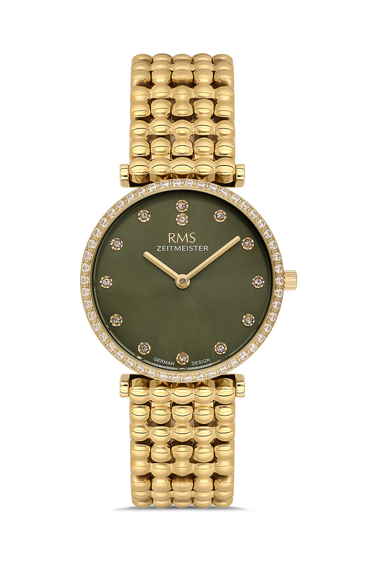 Kadın - Taşli - Sari - Yeşi̇l - Paslanmaz Masi̇f Çeli̇k - 5 Atm - Sertleşti̇ri̇lmi̇ş Mi̇neral Cam - Grand Romanson - 30