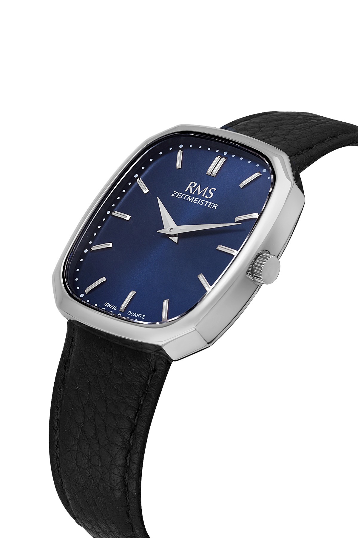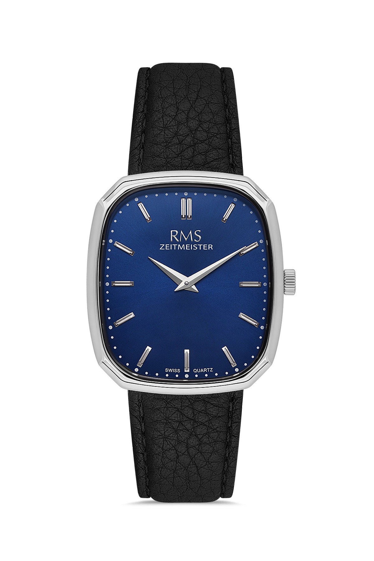 Erkek - Düz - Gümüş - Mavi̇ - Doğal Deri̇ Kordon - Si̇yah - 5 Atm - Safi̇r Cam - Grand Romanson - 34*39