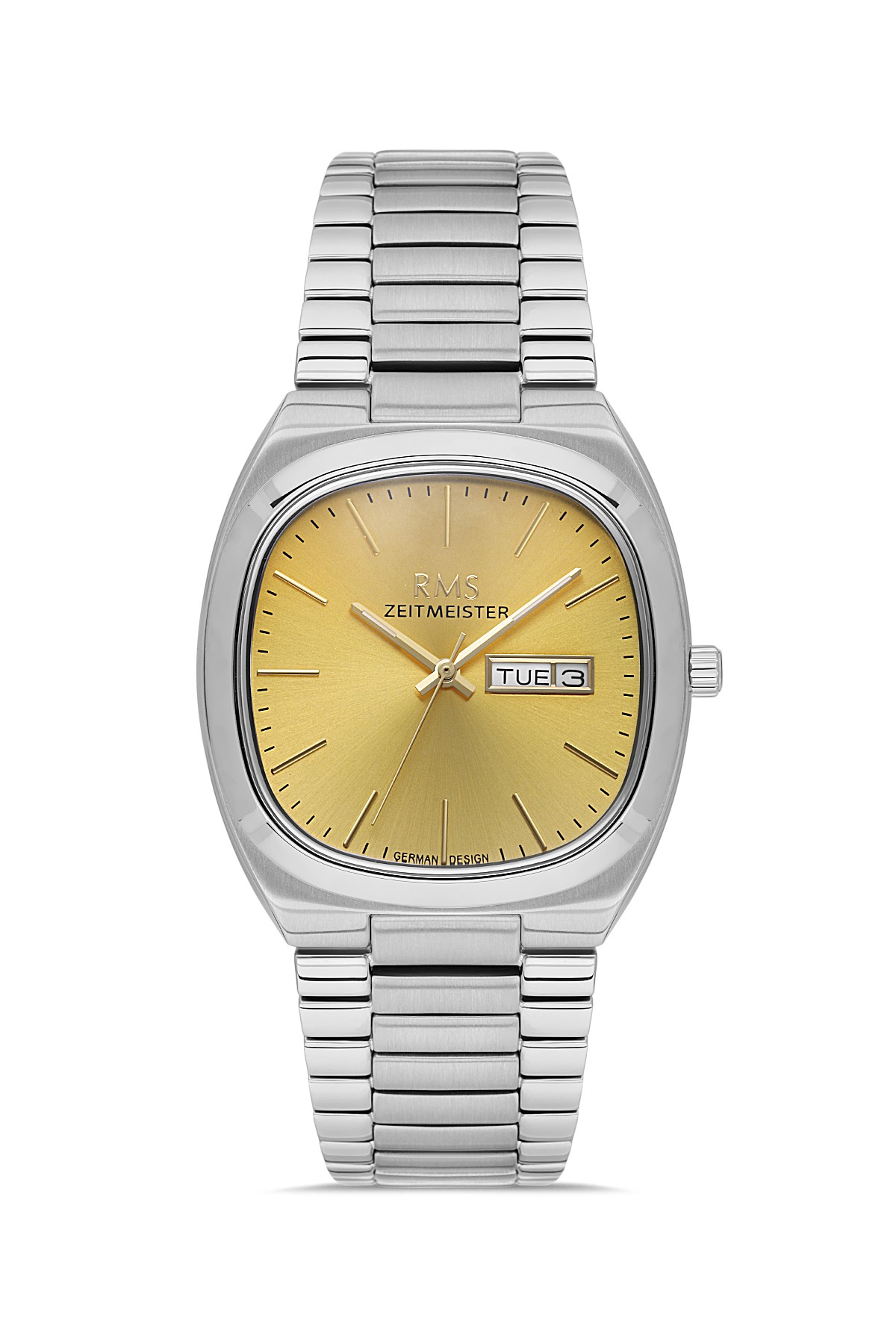 Erkek - Takvi̇mli̇ - Gümüş - Sari - Paslanmaz Masi̇f Çeli̇k - 5 Atm - Sertleşti̇ri̇lmi̇ş Mi̇neral Cam - Grand Romanson - 42