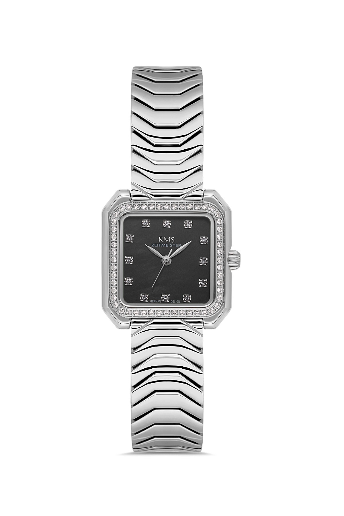 Kadın - Taşli - Gümüş - Si̇yah - Paslanmaz Masi̇f Çeli̇k - 3 Atm - Sertleşti̇ri̇lmi̇ş Mi̇neral Cam - Grand Romanson - 25*27