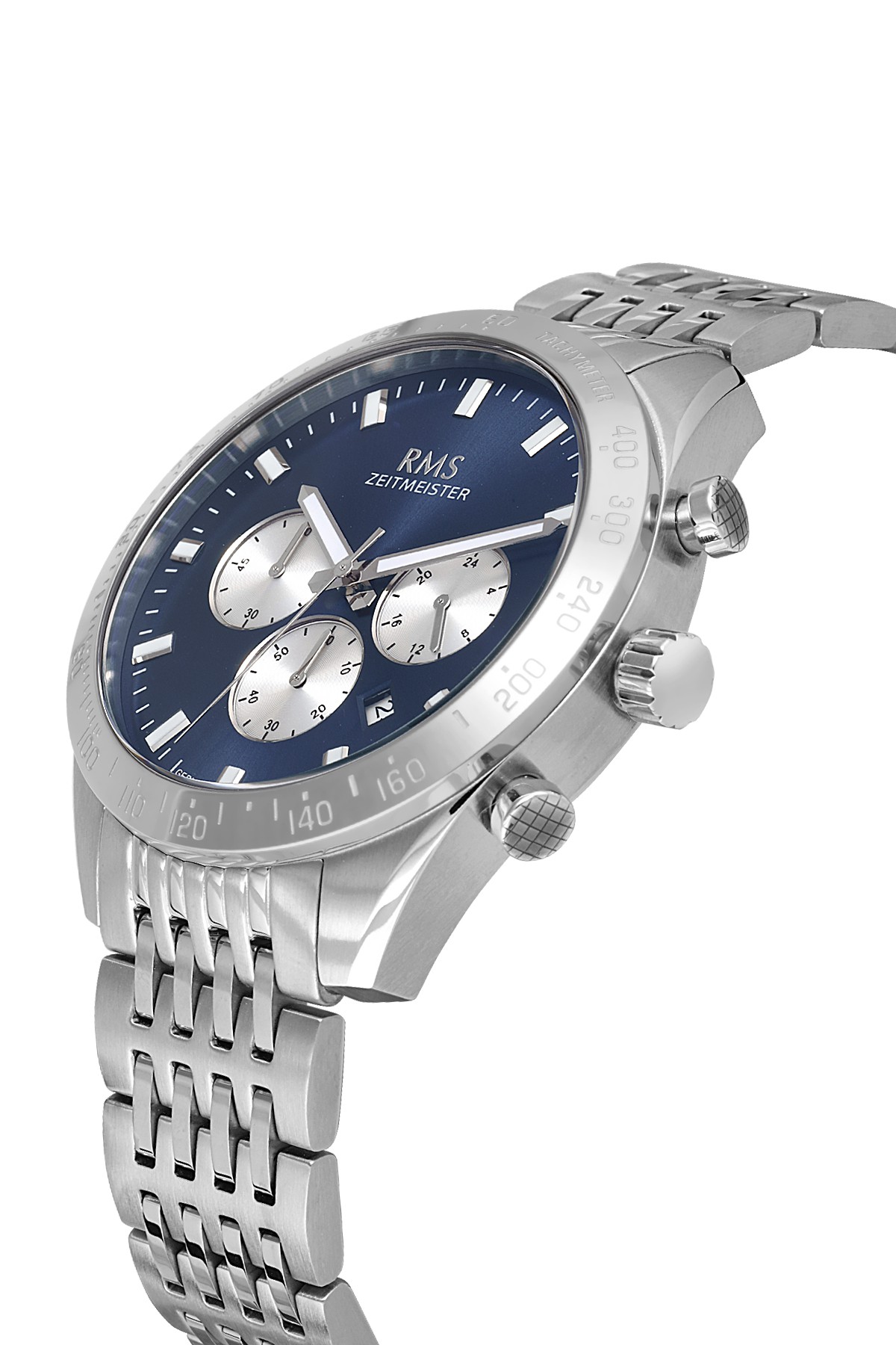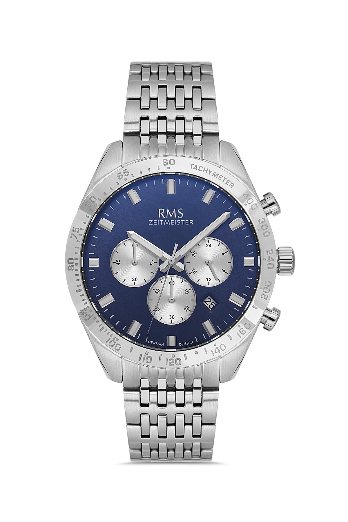 Erkek - Kronometre - Gümüş - Mavi̇ - Paslanmaz Masi̇f Çeli̇k - 5 Atm - Sertleşti̇ri̇lmi̇ş Mi̇neral Cam - Grand Romanson - 43