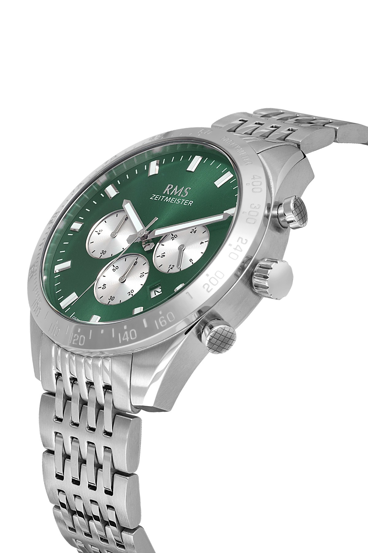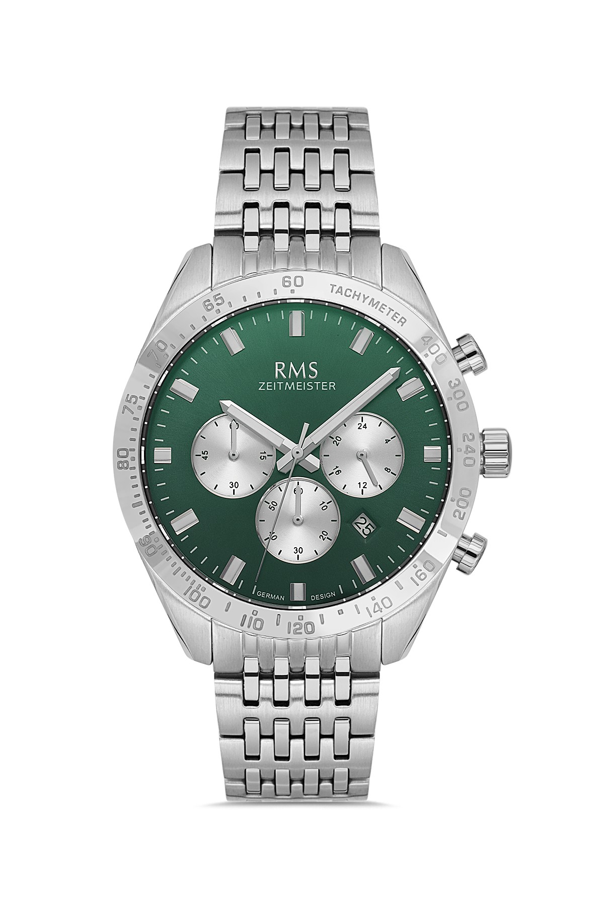 Erkek - Kronometre - Gümüş - Yeşi̇l - Paslanmaz Masi̇f Çeli̇k - 5 Atm - Sertleşti̇ri̇lmi̇ş Mi̇neral Cam - Grand Romanson - 43