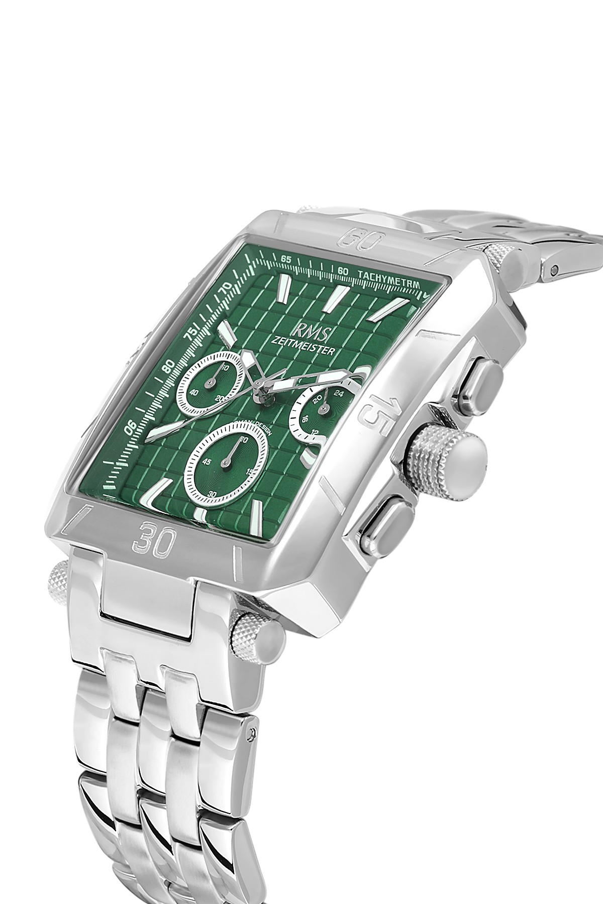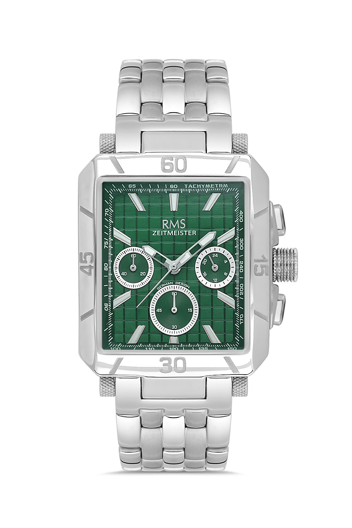 Erkek - Kronometre - Gümüş - Yeşi̇l - Paslanmaz Masi̇f Çeli̇k - 5 Atm - Sertleşti̇ri̇lmi̇ş Mi̇neral Cam - Grand Romanson - 36*41