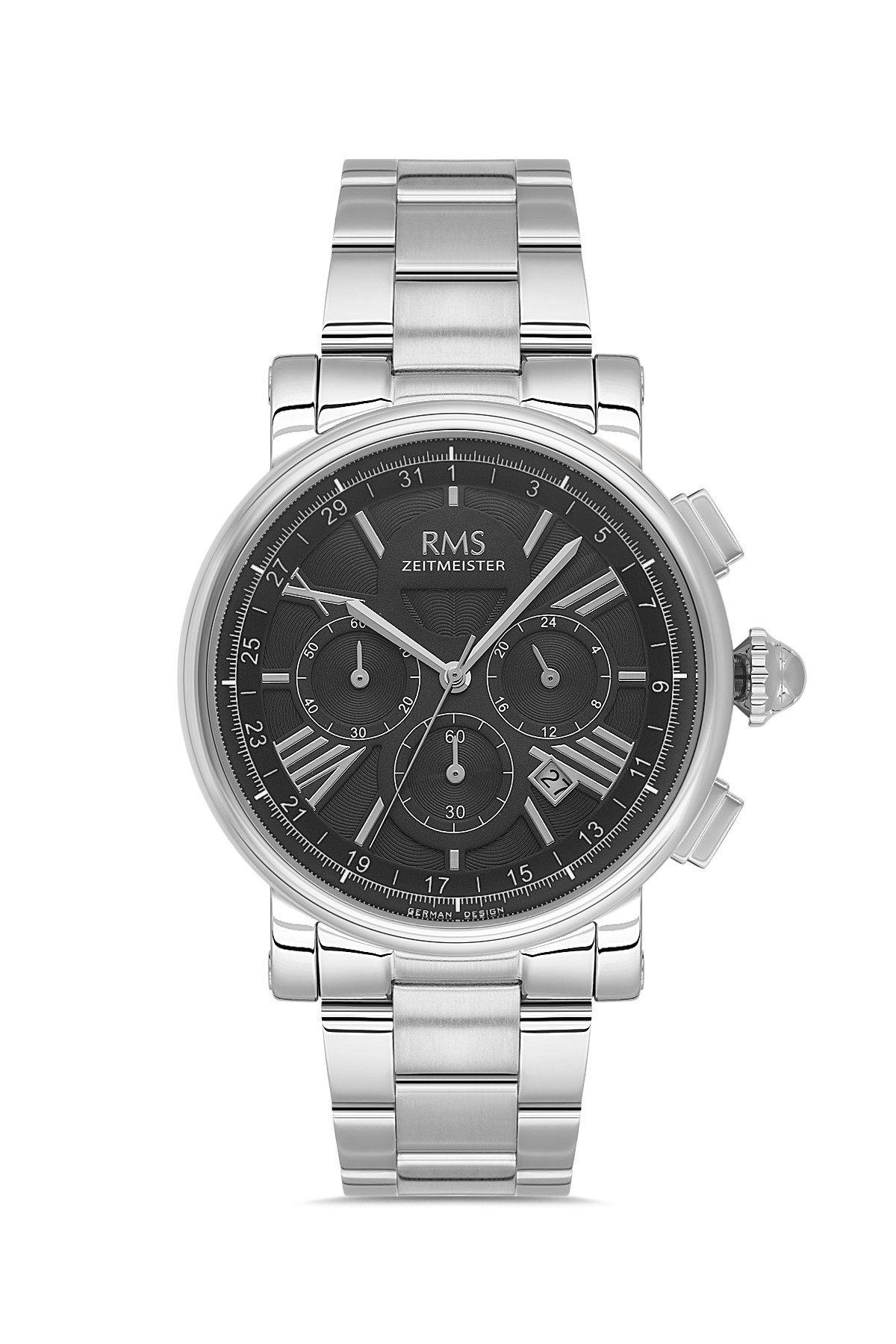 Erkek - Kronometre - Gümüş - Si̇yah - Paslanmaz Masi̇f Çeli̇k - 3 Atm - Safi̇r Cam - Grand Romanson - 44