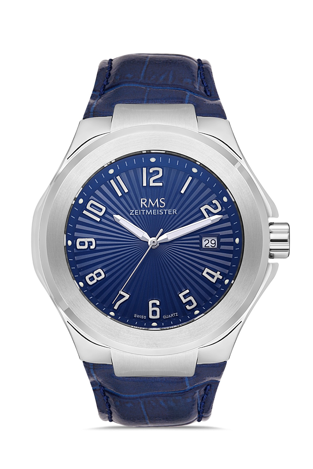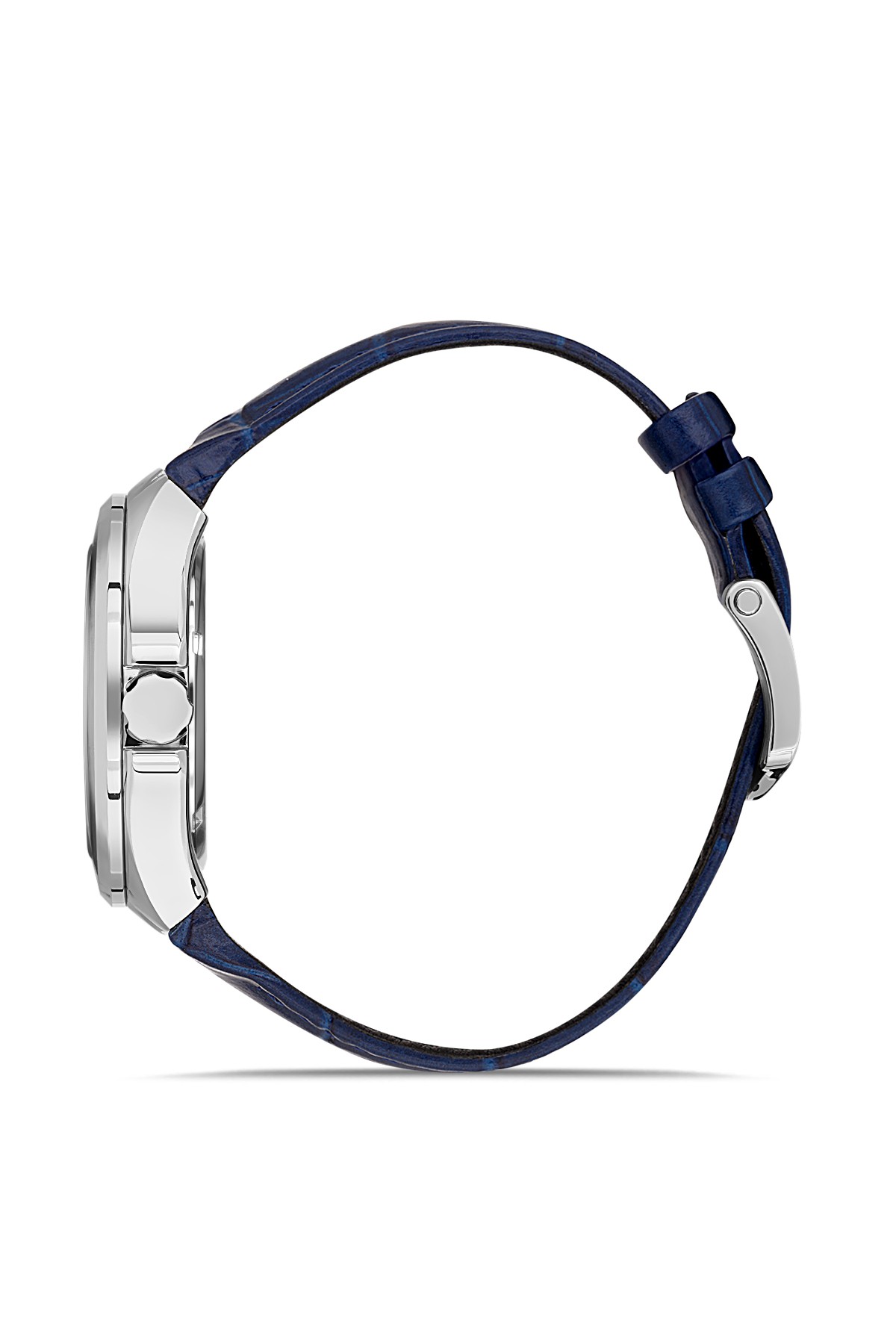 Erkek - Takvi̇mli̇ - Gümüş - Mavi̇ - Doğal Deri̇ Kordon - Mavi̇ - 10 Atm - Sertleşti̇ri̇lmi̇ş Mi̇neral Cam - Grand Romanson - 44