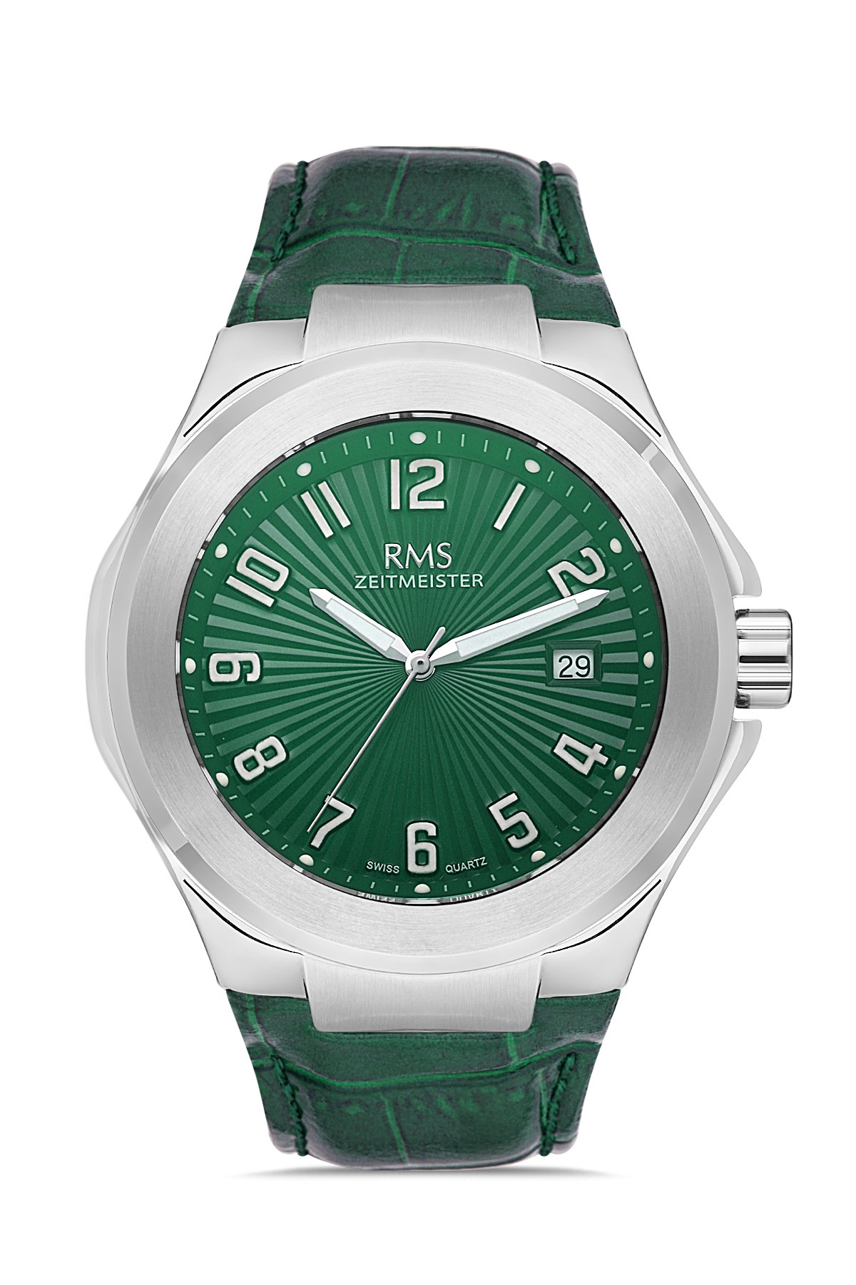 Erkek - Takvi̇mli̇ - Gümüş - Yeşi̇l - Doğal Deri̇ Kordon - Yeşi̇l - 10 Atm - Sertleşti̇ri̇lmi̇ş Mi̇neral Cam - Grand Romanson - 44