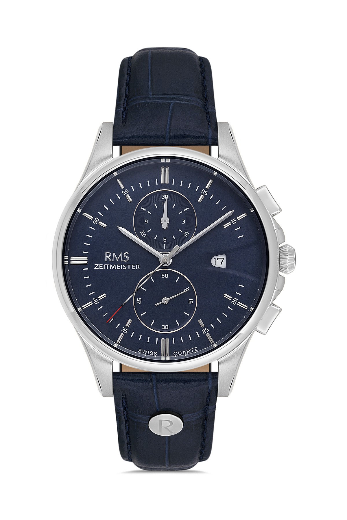 Erkek - Kronometre - Gümüş - Mavi̇ - Doğal Deri̇ Kordon - Mavi̇ - 5 Atm - Sertleşti̇ri̇lmi̇ş Mi̇neral Cam - Grand Romanson - 44